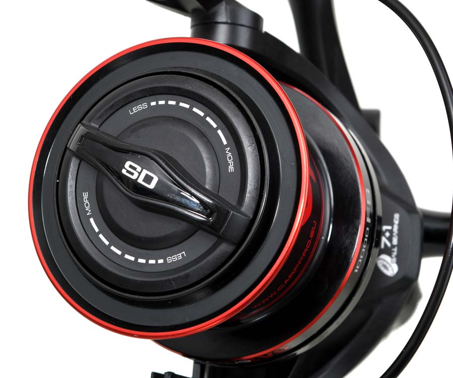 Carp Pro Cratus Evo 10000 FS – новинка 2024 года, мощная и надёжная карповая катушка нового поколения для ловли трофейной рыбы на больших дистанциях. Модель Cratus Evo 10000 FS будет великолепным дополнением к одноименной серии карповых удилищ Carp Pro Cratus Evo. Она изготовлена в жёстком корпусе из высокопрочного пластика и оснащена мощным тяговым механизмом с червячной передачей. Удобная система свободного схода лески Free Spool не позволяет рыбе сорвать удилище с подставки во время резкой поклёвки, а фрикцион Speed Drag обеспечивает быстрое изменение тормозного усилия во время вываживания крупной рыбы. Вместительная алюминиевая шпуля с конической формой буртика способствует снижению трения лески и заметно повышает дальность заброса. Качественная укладка лески достигается использованием бесконечного винта. Под шпулей Carp Pro Cratus Evo 10000 FS расположено специальное пластиковое кольцо, предотвращающее попадание лески под шпулю и наматывание её на ось. К достоинствам новых катушек Cratus Evo 10000 FS стоит также отнести алюминиевую ручку, которая вкручивается в главную пару, минимизируя люфты в этом узле, сверхпрочную ось из нержавеющей стали, ролик лесоукладывателя с покрытием из нитрида титана и системой Anti-Twist, исключающий перекручивание лески, мгновенный стопор обратного хода, повышенное количество лески, наматываемой за один оборот ручки, круглую металлическую клипсу, а также быстрый фрикцион, который отличается высокой стабильностью работы. Катушка Carp Pro Cratus Evo 10000 FS – это надёжный рабочий инструмент для охотников на трофейную рыбу, который выполнен в стильном черном цвете с красными элементами дизайна и идеально сочетается с одноименной серией карповых удилищ Cratus Evo!