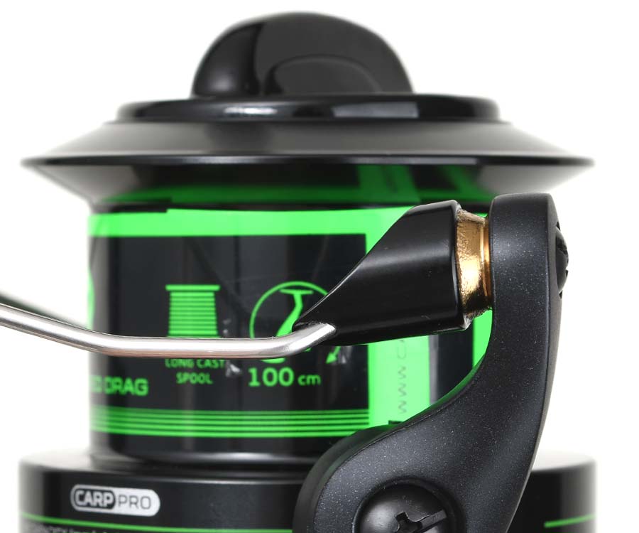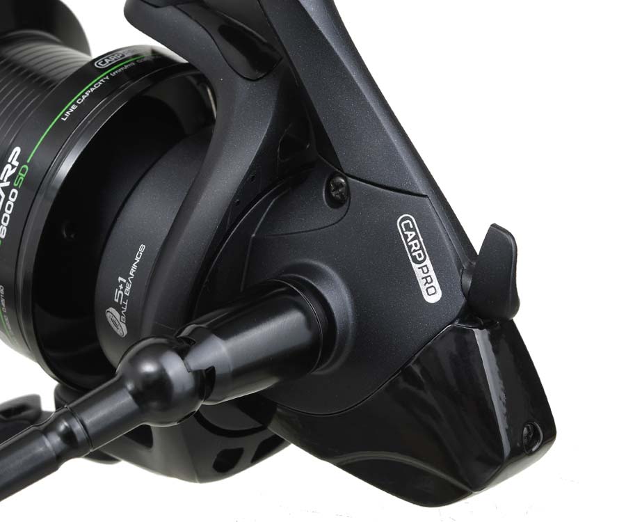 Carp Pro D-Carp 6000 SD – новинка 2023 года! Обновлённая линейка карповых катушек D-Carp создана для ловли трофейной рыбы на больших дистанциях. Катушки Carp Pro D-Carp новой генерации надёжные, эффективные и удобные в работе! Модель D-Carp 6000 SD предназначена как для классической карповой ловли удилищами длиной до 3 м, так и для ловли карпа на метод-фидер. Оснащена мощным тяговым механизмом с червячной передачей и быстрым фрикционом Speed Drag. Алюминиевая шпуля с конической формой буртика способствует снижению трения лески при забросе, что положительно влияет на его дальность. Качественная укладка лески достигается использованием бесконечного винта. Надёжная алюминиевая ручка приобрела новый обрезиненный кноб меньшего размера, более удобный в работе. Резиновый выступ на ножке катушки предотвращает проворачивание ротора при открытой дужке. Ролик лесоукладывателя конструкции Anti-Twist имеет покрытие из нитрида титана, которое предотвращает его пропиливание при работе со шнурами. Фрикцион Speed Drag с мощными дисками и быстрой настройкой тормозного усилия отличается стабильной работой и не подведёт в самый ответственный момент.