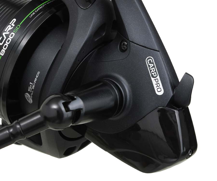 Carp Pro D-Carp 8000 SD – новинка 2023 года! Обновлённая линейка карповых катушек D-Carp предназначена для ловли трофейной рыбы на максимальных дистанциях. Катушки Carp Pro D-Carp новой генерации надёжные, эффективные и удобные в работе! Модель D-Carp 8000 SD оснащена мощным тяговым механизмом с червячной передачей и быстрым фрикционом Speed Drag. Крупная алюминиевая шпуля геометрии Long Cast имеет большую площадь поверхности намотки, поэтому даже при очень дальних забросах диаметр намотки снижается минимально, что значительно уменьшает трение лески при забросе. Снижению трения лески также способствует коническая форма самого буртика. Качественная укладка лески достигается использованием бесконечного винта. Надёжная алюминиевая ручка приобрела новый обрезиненный кноб меньшего размера, более удобный в работе. Резиновый выступ на ножке катушки предотвращает проворачивание ротора при открытой дужке. Ролик лесоукладывателя конструкции Anti-Twist имеет покрытие из нитрида титана, которое предотвращает его пропиливание при работе со шнурами. Надёжный фрикцион Speed Drag с мощными дисками и быстрой настройкой тормозного усилия отличается стабильной работой и не подведёт в самый ответственный момент.