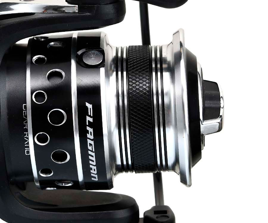Flagman Force Rank Feeder – обновлённая серия прекрасно зарекомендовавших себя фидерных катушек, в которых надёжность и высокие тяговые характеристики сочетаются с доступностью для широкого круга рыболовов. Их корпус и ротор изготовлены из высокопрочного пластика. Мощная главная пара Power Gear и шарикоподшипники, установленные в самых нагруженных точках, обеспечивают значительный ресурс механизма. Вкручивающаяся в ведущую шестерню алюминиевая ручка исключает любые люфты. Кулисный механизм системы S-Curve Oscillation гарантирует качественную укладку лески, а устойчивый к истиранию ролик лесоукладывателя системы Anti-Twist предотвращает ее перекручивание. Ёмкость облегчённой алюминиевой шпули Flagman Force Rank Feeder оптимальна для работы с тонкими современными лесками и шнурами. Шпуля оснащена круглой металлической клипсой, которая делает фиксацию дистанции при фидерной ловле надёжной и безопасной как для лески, так и для шнура. Конический буртик шпули значительно уменьшает трение и повышает дальность заброса. Поверхность шпули «опоясана» специальной полосой с мелкой насечкой, которая препятствует проворачиванию намотанной лески или шнура под большими нагрузками. Фрикцион обладает точной плавной регулировкой и отличается стабильной работой. Металлическая ручка имеет удобный обрезиненный кноб, который обеспечивает надёжный и уверенный хват при работе с катушкой.