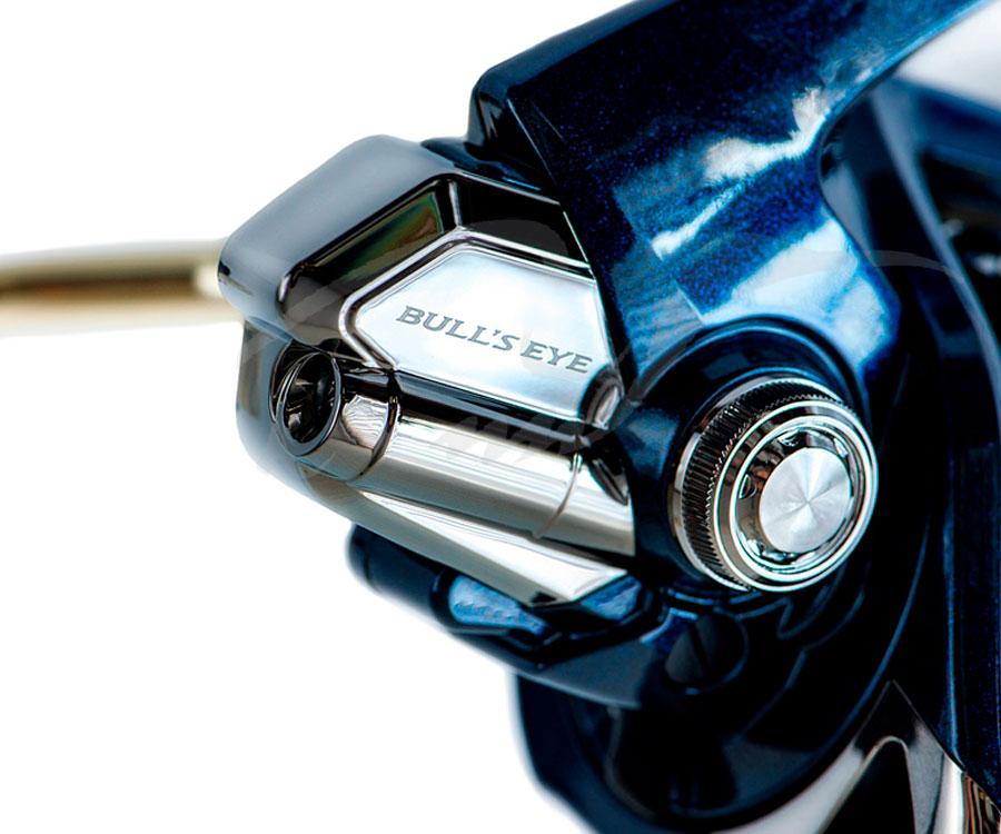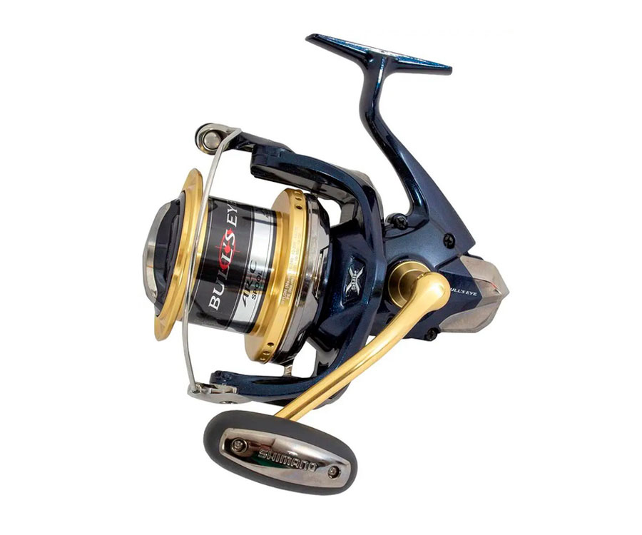 Катушка Shimano Bull's Eye – крупная силовая безынерционная катушка для сёрфовой рыбалки, которая отличается высокой надёжностью и мощностью. Её усиленная конструкция позволяет производить ловлю крупной и сильной рыбы тяжёлыми оснастками и при этом получать удовольствие от процесса. Внутренняя шестерёнчатая передача X-Ship и увеличенная главная шестерня с дополнительным упорным подшипником способны создавать высокое тяговое усилие без боязни повреждения механизма. В катушке установлены 5 экранированных подшипников S A-RB, не подверженных коррозии. Шпуля AR-C Spool, увеличенного диаметра, имеет вытянутую форму, благодаря чему леска ложится равномерно по всей площади и равномерно сходит с неё, чем достигается максимальная дальность заброса. Контролировать рыбу во время вываживания поможет быстрый фрикционный тормоз, где от ослабленного до максимально зажатого состояния достаточно сделать один оборот регулировочного винта. Мощная металлическая ручка ввинчивается непосредственного в ось ведущей шестерни, исключая любые люфты в этом узле. Мощная высокотехнологичная модель Shimano Bull's Eye может применяться не только в морской рыбалке, она также найдёт своих поклонников в карповой ловле, в тех случаях, когда крупная рыба располагается далеко от берега, и чтобы до неё достать необходимо использовать тяжёлые дальнобойные снасти.