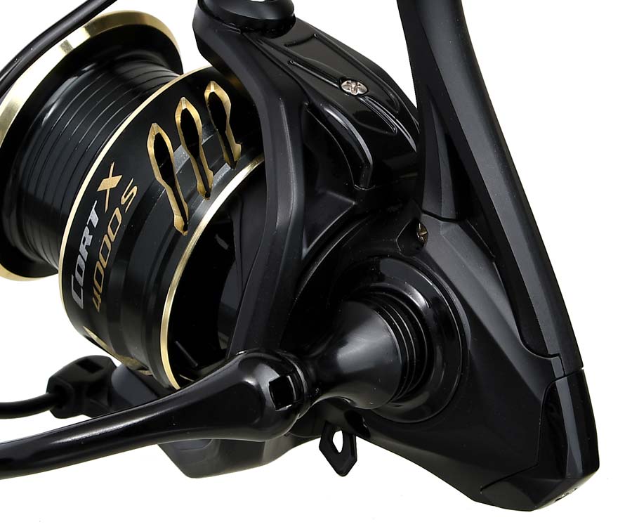 Flagman '23 Cort-X – обновлённая серия спиннинговых катушек Cort-X, которые выделяются современным дизайном и отличными техническими характеристиками. Лёгкий и прочный графитовый корпус Flagman Cort-X удачно сочетается с облегчённой алюминиевой шпулей, лёгким компактным ротором из графита, не имеющим излишней инерции, и удивительно плавным и бесшумным ходом механизма. Низкопрофильная алюминиевая шпуля с уменьшенной глубиной намотки и ролик лесоукладывателя с системой Anti-Twist дают возможность без ограничений использовать как монофильные лески, так и современные плетёные шнуры. Инновационная коническая форма переднего буртика шпули и усовершенствованный кулисный механизм, обеспечивающий качественную укладку лески, значительно повышают дальность и точность заброса приманок. Среди безусловных достоинств обновлённых катушек Flagman '23 Cort-X – надёжный механизм с увеличенной ведущей шестерней, редукция 5,2:1, 7+1 высококачественных подшипников, моментальный антиреверс, ролик лесоукладывателя со сверхтвёрдым покрытием, надёжная алюминиевая ручка с кнобом из EVA, а также фрикцион с высокоточной регулировкой тормозного усилия и мягкий тканевый чехол.