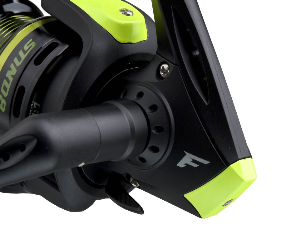 Серия спиннинговых катушек Flagman Bonus – прекрасная иллюстрация оптимального соотношения цены и качества. Главное достоинство катушек Bonus – исключительно мягкий и ровный ход, нечасто встречающийся у моделей данной ценовой категории. Добавьте сюда прочный и стильный пластиковый корпус, облегченный ротор, прекрасные тяговые характеристики и динамическую балансировку, качественную укладку лески – и мы получим портрет недорогой катушки, обладающей полным набором необходимых рыболову характеристик. Модели всех размеров – 2000S, 2500S, 3000S, 4000S, 5000S – оборудованы облегченными низкопрофильными алюминиевыми шпулями с коническим буртиком, существенно повышающим дальность заброса. Плавная регулировка фрикциона позволяет оптимально подобрать необходимое вам тормозное усилие. Ролик лесоукладывателя имеет сверхтвердое покрытие, а его форма препятствует перекручиванию лески или шнура. Ручка вкручивается непосредственно в главную пару, изготовлена из высокопрочного пластика, а ее рукоятка имеет удобную плоскую форму. В комплекте идет мягкий матерчатый чехол. Дополнительной шпулей катушки не комплектуются.
