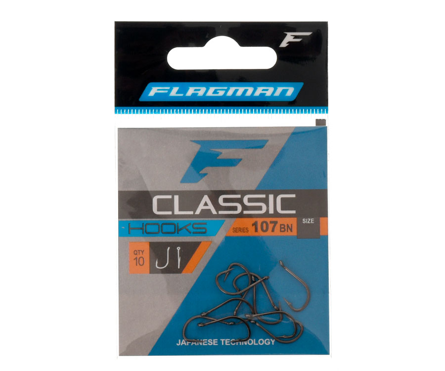 Крючки Flagman Hook Classic 107 – новинка 2024 года, серия универсальных и достаточно мощных крючков с колечком, предназначенных для широкого круга рыболовов. Крючки Classic 107 имеют полукруглый загиб, широкий кованый поддев, средней длины цевье с отогнутым наружу колечком для привязывания лески и слегка загнутое в сторону прямое жало с лазерной заточкой. Крючки серии Flagman Hook Classic 107 отличаются прочностью, надёжностью, великолепной зацепистостью, отличной реализацией поклёвок, длительное время сохраняют первоначальную остроту жала. Изготовлены из высокоуглеродистой стальной проволоки с качественным антикоррозийным покрытием Black Nickel. Идеально подойдут как для фидерной, так и для поплавочной ловли рыбы на объёмные насадки растительного и животного происхождения. Острейшее жало и зацепистая бородка гарантируют эффективную подсечку и уверенное удержание трофея. В зависимости от величины предполагаемой добычи и оснастки, вы сможете легко подобрать крючки необходимого размера.