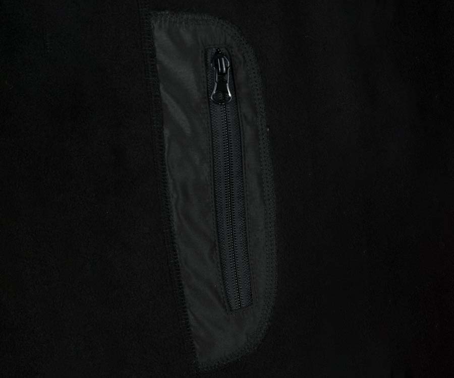 Azura Polare 200 black – стильная, лёгкая, удобная и многофункциональная куртка для рыбалки, охоты, активного отдыха и повседневной носки. Куртка Azura Polare 200 black пошита в стиле slim fit, что предполагает её плотную посадку по фигуре. Изготовлена с применением технологии плоского шва из ворсистого двустороннего флиса Polare 200. Активные зоны – воротник, плечи, локти, карманы – усилены износостойким нейлоном. В изделии используется высококачественная фурнитура: полноразмерный передний замок-молния, молнии на нагрудном и боковых карманах.