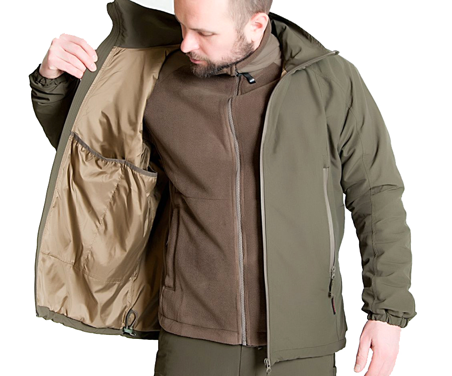 Благодаря применению сверхпрочных японских нейлоновых тканей Gelanots®, с водоотталкивающей пропиткой S-DWR С-6, ветровка получилась легкой и комфортной. Главными свойствами которой являются ветронепроницаемость, хорошая паропроницаемость, износостойкость, малые вес и объем. Центральная молния с дополнительной ветрозащитной планкой. Два внешних кармана на молниях и два внутренних кармана. Высокий воротник с объемным капюшоном, который имеет 3 варианта регулирования и складывается в воротник. Низ куртки регулируется с помощью утяжки.