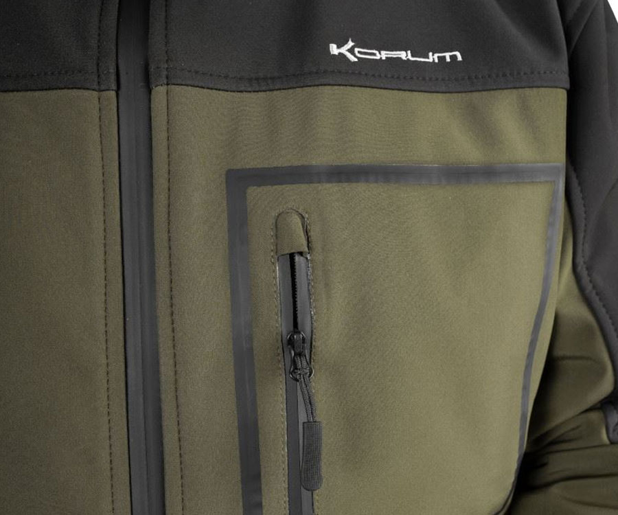 Korum Neoteric Softshell Jacket. Благодаря использованию инновационных водоотталкивающих и ветрозащитных тканей Neoteric Softshell сохраняет тепло и сухость дольше. Подкладка из термофлиса легкая, но чрезвычайно эффективная для защиты от низких температур. Фантастическая куртка как часть многослойной системы зимой или как внешний слой в более мягкие дни. Капюшон помогает уберечься от дождя и сквозняков. Имеет два боковых кармана и водонепроницаемый нагрудный карман.