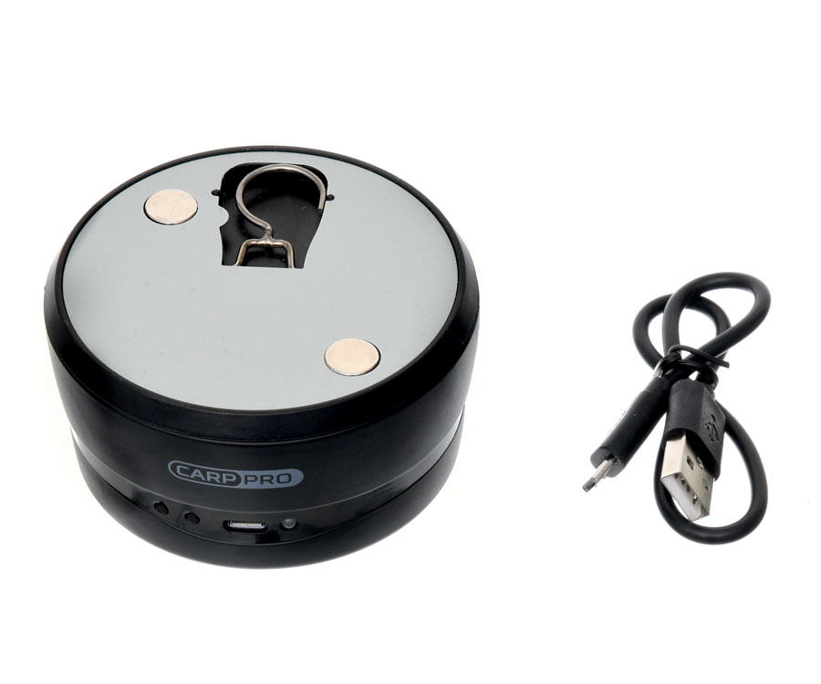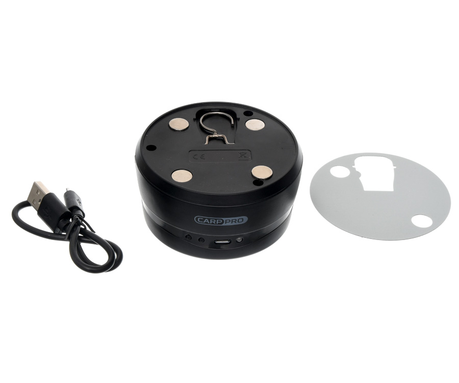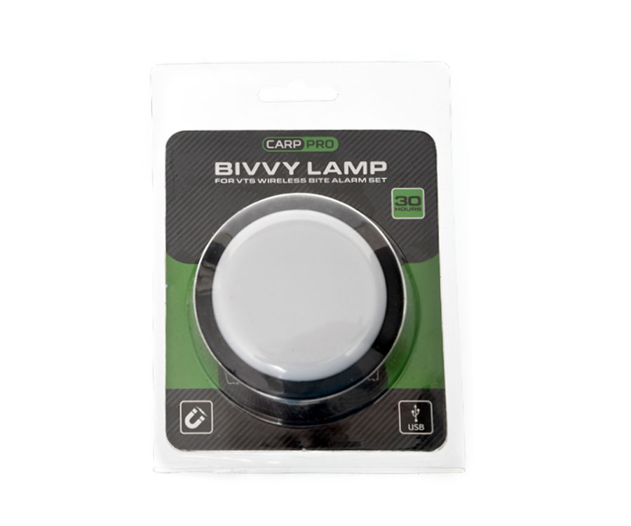 Carp Pro Bivvy Lamp – фонарь для палатки с беспроводным подключением к сигнализаторам поклевки VTS SLIM 4+1. При помощи съемной металлической пластины на магнитном креплении либо специального крючка фонарь прикрепляется или подвешивается в палатке. Может использоваться как обычный источник света в палатке. Кроме этого фонарь имеет функцию сигнализации о поклевке, при сработке одного из сигнализаторов VTS SLIM 4+1. Причем цвет свечения фонаря будет соответствовать цвету того сигнализатора, который зарегистрировал поклевку. Имеется возможность индивидуальной настройки цвета каждого сигнализатора, а также настройки четырех уровней яркости свечения фонаря. Комплектуется USB кабелем для зарядки аккумулятора. Длительность беспрерывной работы в режиме LED фонаря – 30 часов.