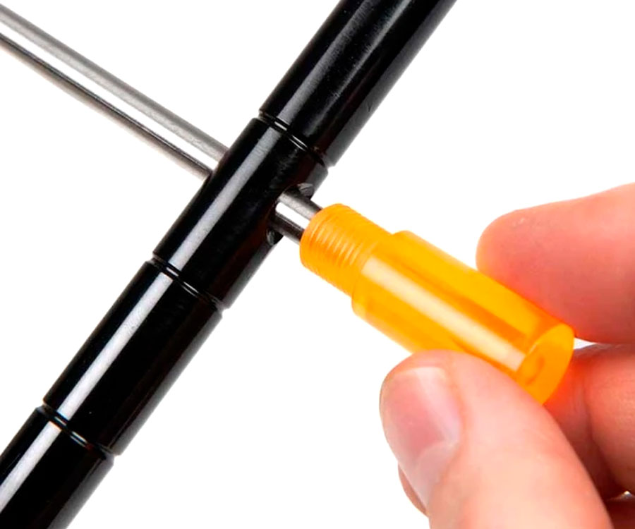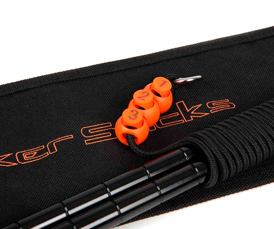 Палки имеют фрезерованные канавки вдоль всей длины, которые минимизируют скольжение лески при измерении отрезков. Верхняя часть оснащена оранжевым наконечником Lite Flow, видимым даже при слабом освещении. Внутри насадки есть место для изотопа диаметром 25 мм, защищенное резиновой пробкой.