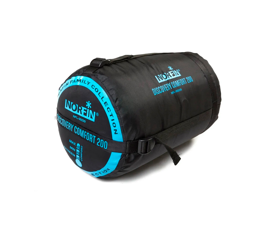 Спальний мешок Norfin Discovery Comfort 200 Right отлично подходит для мягких погодных условий. Отсутствие подголовника позволяет использовать эту модель как одеяло на рыбалке, на отдыхе и даже дома.