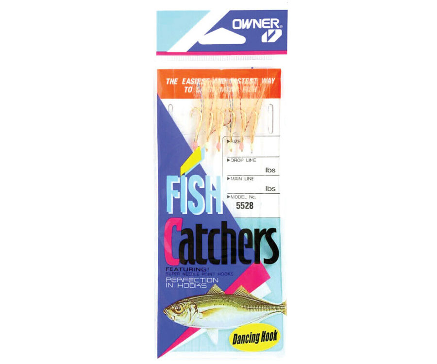 Owner Sabiki Gold Dancing 5528 – готовая морская оснастка типа Sabiki. Имеет 6 поводков с приманками, привязанных к основной леске. На поводках – небольшие стримеры с зелеными и розовыми светящимися головками и дополнением из кристалл флэша, смонтированные на одинарных позолоченных крючках. На поводке перед каждой приманкой установлена скользящая бусина из светонакопителя. Оснастка Owner Sabiki Gold Dancing имитирует стайку кормовых объектов и применяется для бортовой ловли стайных морских хищников. Owner 5528 изготовлена из высококачественной лески. Оснащена вертлюгами для предотвращения перекручивания основной лески и поводков, а также застежкой – для крепления грузила.