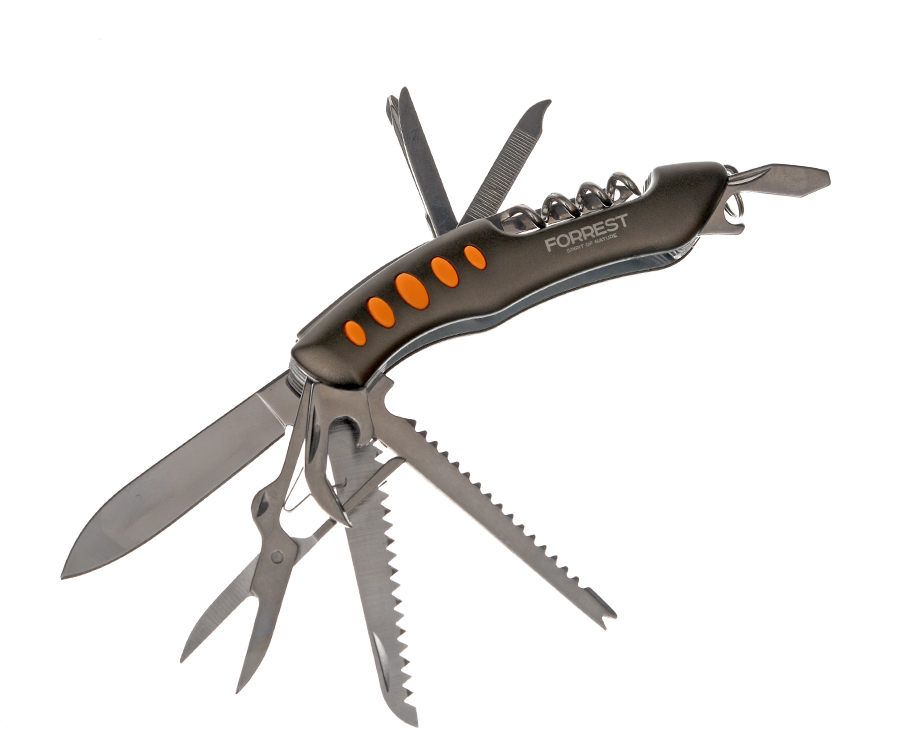Мультитул Forrest Optima MC07 Multifunction Knife 15 in 1 – многофункциональный складной нож с дополнительными инструментами, изготовленный из нержавеющей стали. Обеспечивает выполнение наиболее распространённых задач как в домашних, так и в походных условиях.