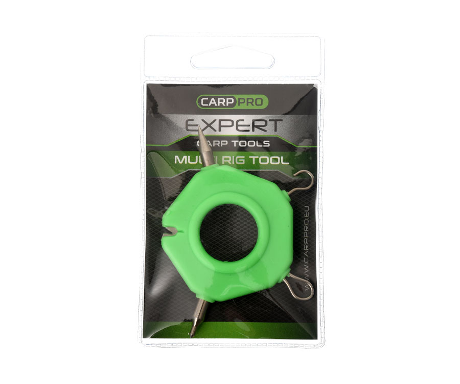 Carp Pro Expert Multi Rig Tool – удобный многофункциональный мультиинструмент, совмещающий в себе пять инструментов необходимых каждому карпятнику. В его составе инструмент для снятия оплётки с поводковых материалов, крюк для затягивания вертлюгов, колечек и ледкора, петля для затягивания узлов на крючках, конус для создания D-образной петли при вязании чод-рига, ступенчатый штырёк для создания идеально одинаковых петель на волосе при изготовлении поводков, а также маленьких аккуратных петель при вязании лидера из ледкора. Мульти инструмент Carp Pro Expert Multi Rig Tool изготовлен из высококачественного пластика и нержавеющей стали. Отверстие в его ручке обеспечивает более удобное удержание, надёжное затягивание узлов, а также уверенное тестирование монтажей и их составляющих на устойчивость к высоким нагрузкам. Expert Multi Rig Tool удобен в работе, а благодаря ярко-зелёному цвету рукояти не затеряется в траве или среди других ваших инструментов.