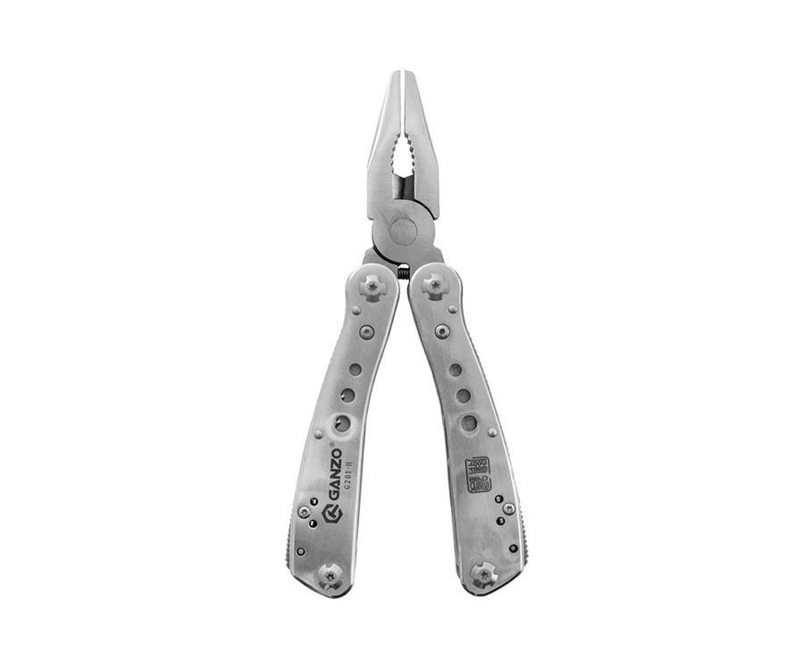Ganzo G201-H – Мультитул. Главный по принципу расположения инструмент мультитул – это плоскогубцы. Они также обладают функцией кусачек и возможностью прочного захвата гаек, втулок и других круглых в сечении предметов.