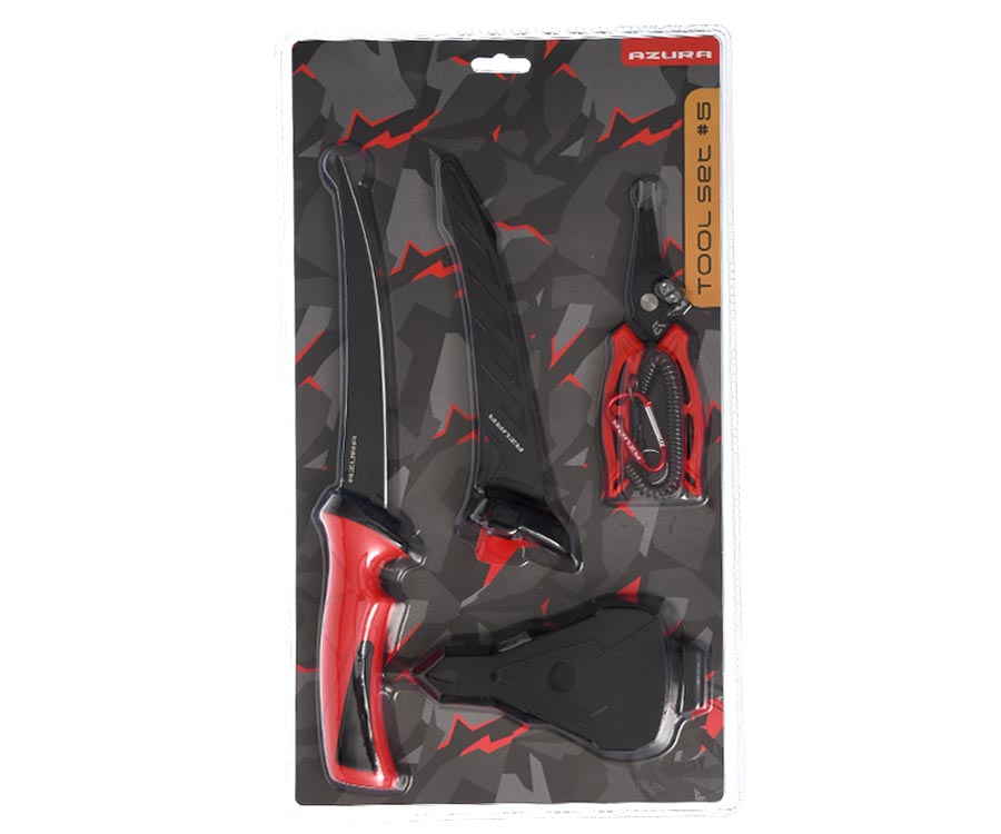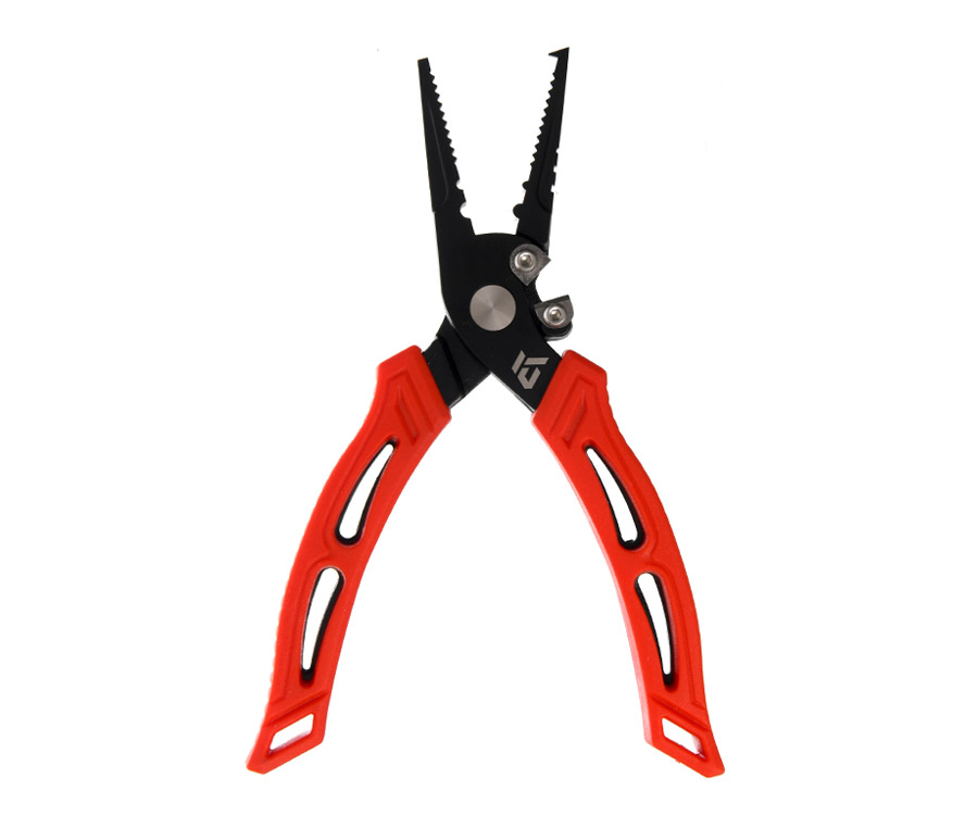 - Многофункциональные плоскогубцы Azura. Изготовлены из нержавеющей стали с PTFE покрытием. Имеют специальный зуб для разжимания заводных колец и приспособления для зажимания обжимных трубочек. Прорези различной ширины помогут подогнуть петельку воблера, крючок или элемент оснастки. Также Azura Multifunction Pliers оборудованы резцами из карбида циркония, которыми без проблем можно перекусить леску или шнур. Резцы съёмные, их легко заменить в случае необходимости (запасные приобретаются отдельно). Эргономичные полиуретановые накладки позволяют комфортно удерживать инструмент в руке и работать с ним. Длина инструмента: 17 см. В комплекте к плоскогубцам идёт прочный чехол оснащён лямкой на липучке, которая не позволяет выпасть инструменту при ношении. Крепится на пояс, причём, конструкция чехла позволяет носить его как вертикально, так и горизонтально. Для крепления ретривера чехол оснащён люверсом.