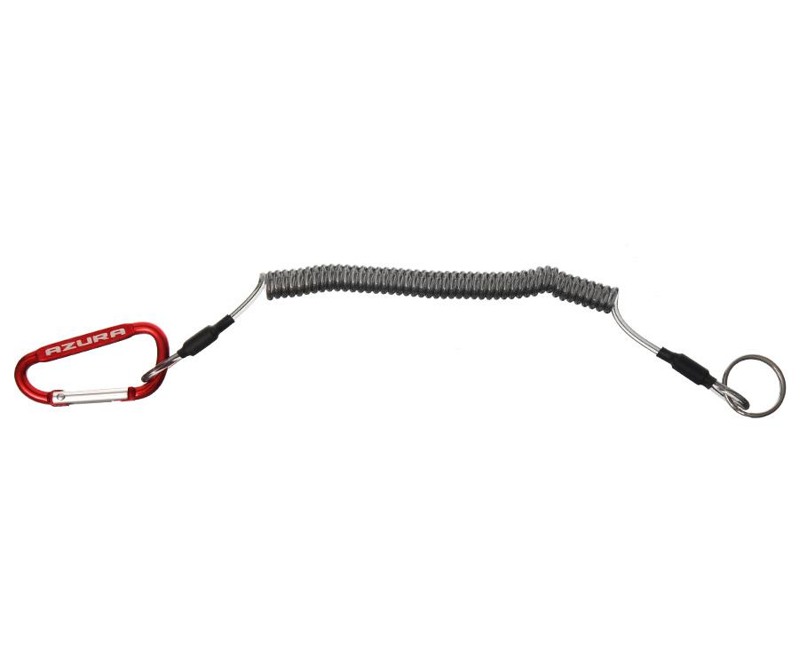 - Ланьярд Azura. Эластичный пружинный ретривер позволяет закрепить рыболовный инструмент на жилете, ремне, в лодке и т.п. С одного края ланьярд оснащен надёжным алюминиевым карабином, с другой – большим заводным кольцом для закрепления инструмента. При небольших размерах Lanyard Azura может растягиваться до 90 см, что значительно облегчает работу с инструментом и не позволяет снаряжению затеряться или выпасть в воду.