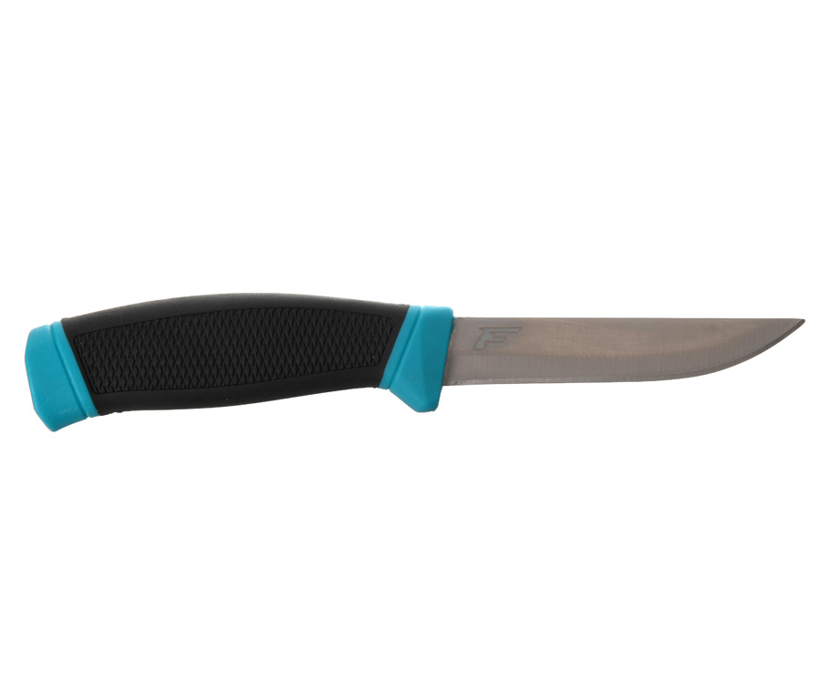 1, 2. Туристический нож + чехол для крепления на поясном ремне. Этим ножом можно нарезать продукты, почистить рыбу, перерубить ветку, открыть консервы. Клинок изготовлен из 420J2 – нержавеющей стали с низким содержанием углерода, японского производства. Рукоять изготовлена из TPR и PP (термопластичной резины и полипропилена), имеет нескользящее в мокрой руке покрытие. Ножны выполнены из пластика, легко моются. Длина ножа: 21,5 см.