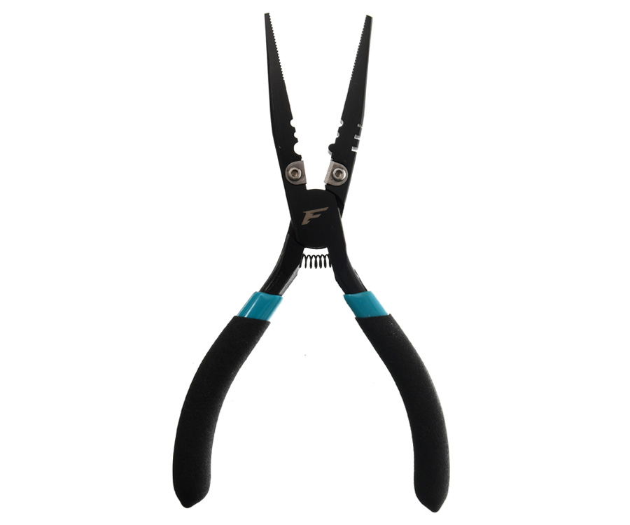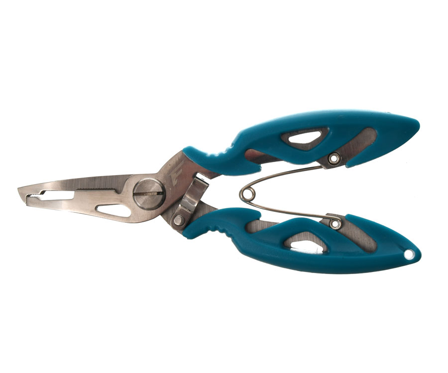 2. Плоскогубцы. Оснащены длинными тонкими губками, что делает их идеальным инструментом для извлечения глубоко засевших крючков. Изготовлены из прочного металла с тефлоновым антикоррозийным покрытием. Оборудованы резцами из карбида вольфрама, которые с легкостью перекусывают лески и шнуры. Резцы легко снимаются, их можно без проблем заменить в случае необходимости (запасные приобретаются отдельно). Также плоскогубцы оснащены приспособлением для зажимания обжимных трубочек. Прорезиненные ручки позволяют комфортно работать, удерживая плоскогубцы в мокрой руке. Длина – 17 см. Вес – 147 г.