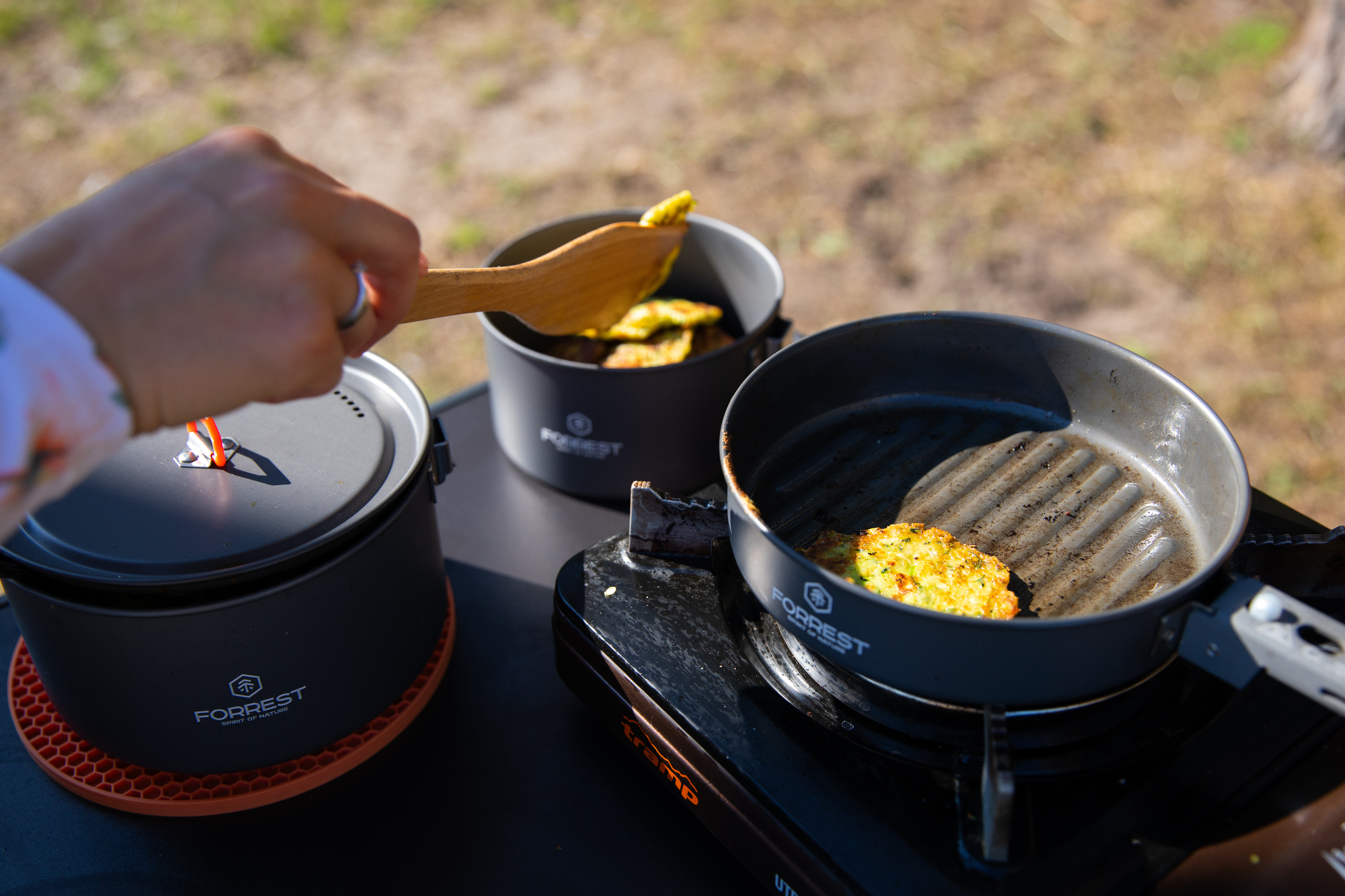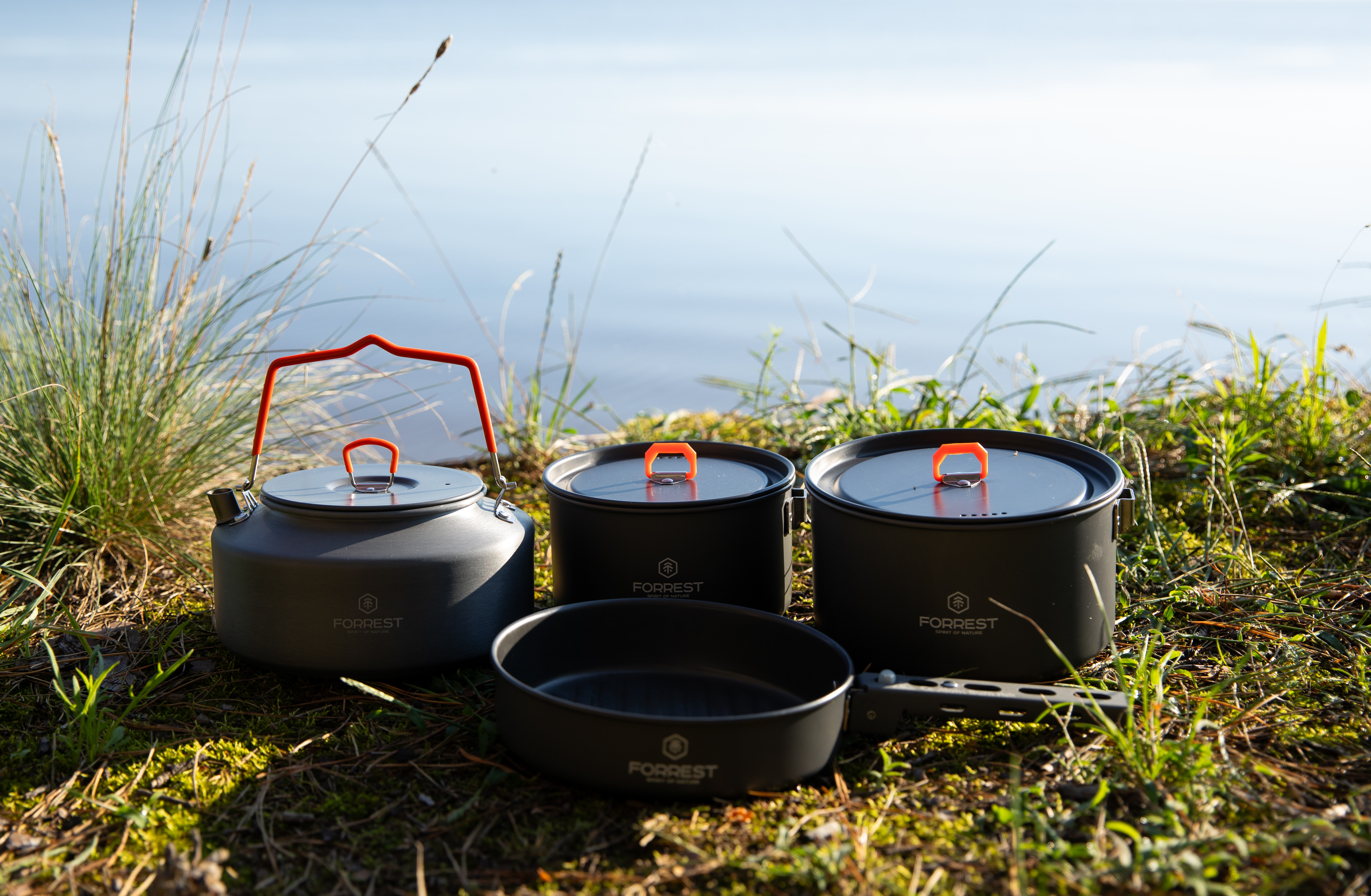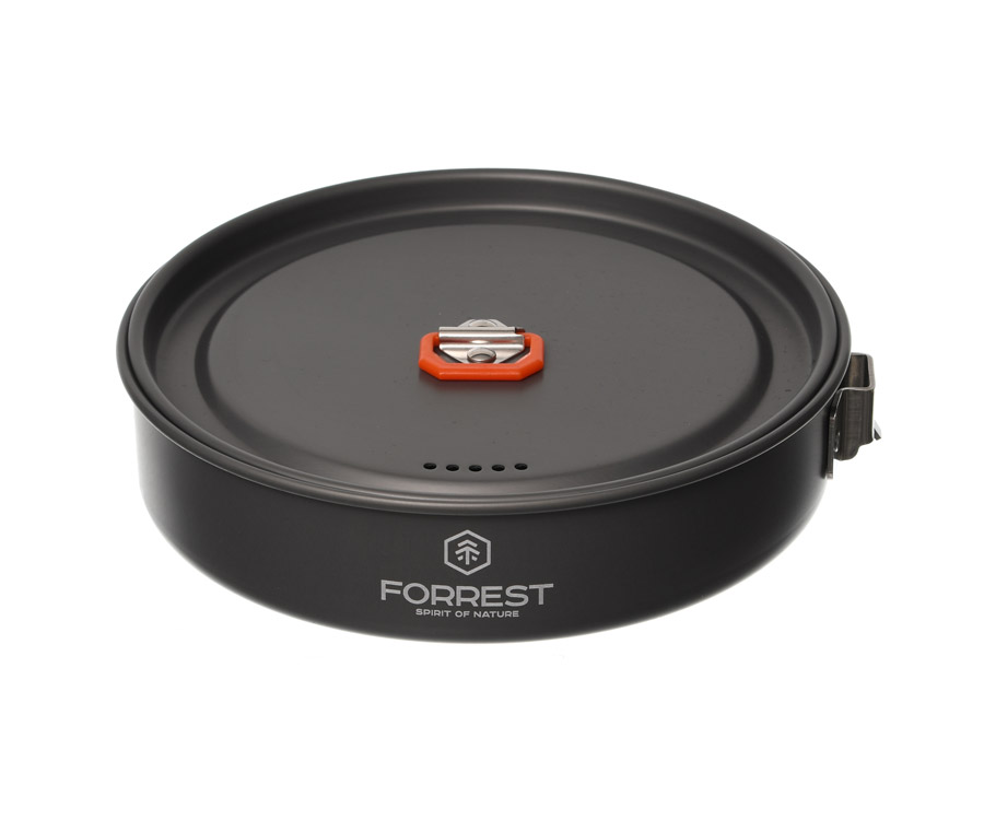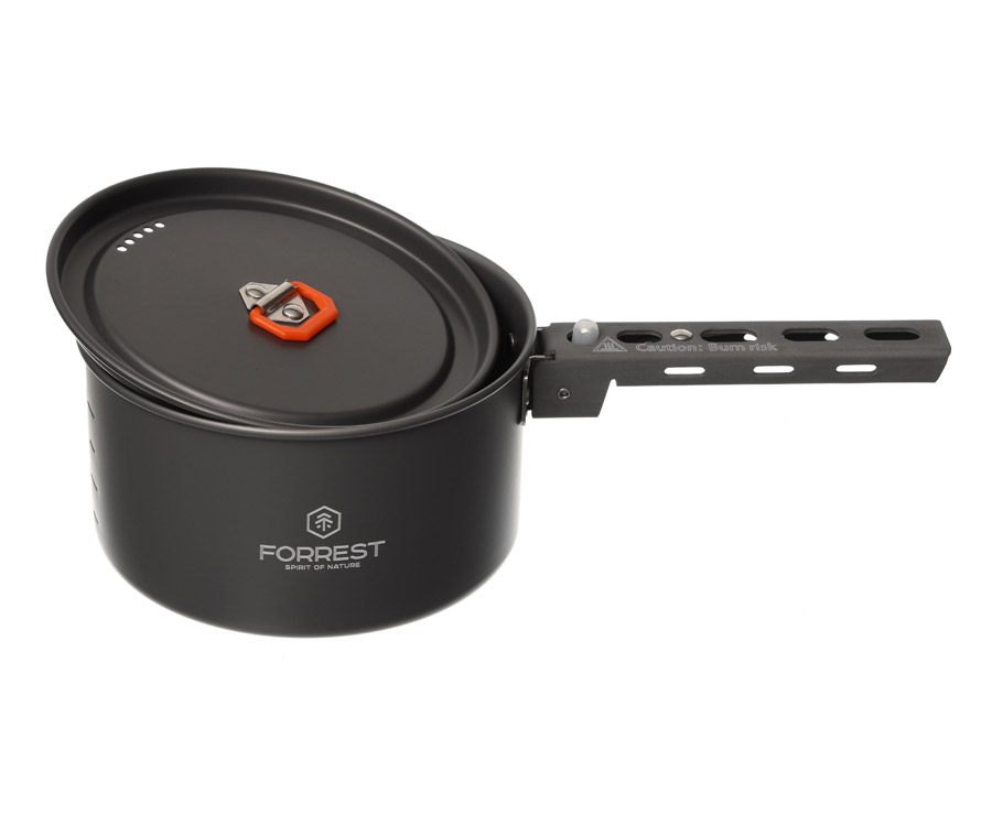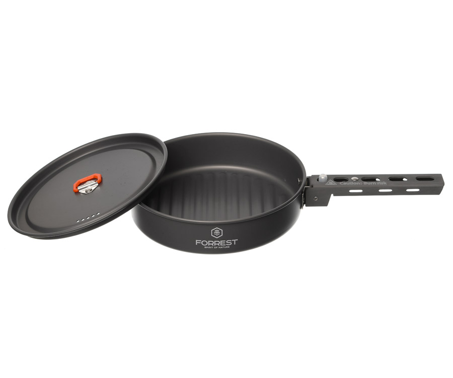 Набор туристической посуды Forrest Camp Set X3 FRT-229 изготовлен из анодированного алюминия. Кроме того, что эта посуда огнеупорная и прочная, ее очень легко мыть. Набор содержит 2 котелка с крышками, сковороду и удобную ручку быстросъемной конструкции. Ручки на крышках котелков имеют термоизоляционное покрытие. Набор Forrest Camp Set X3 упакован в сетчатый мешочек. Стойкое внешнее покрытие не боится открытого огня и не окисляется даже при длительной эксплуатации.