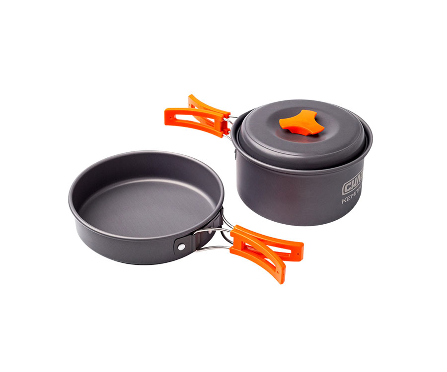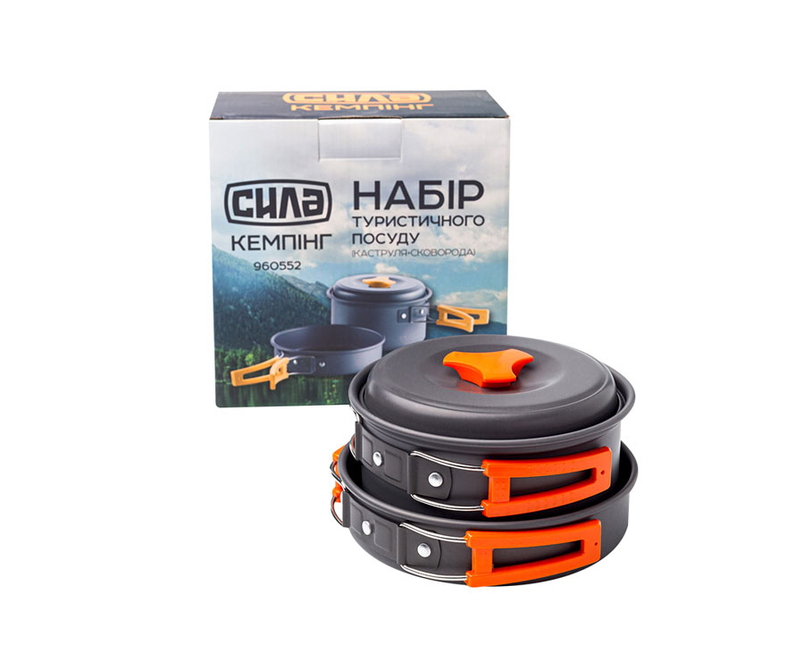 Набор туристической посуды для походов (кастрюля + сковорода) от ТМ «СИЛА». Компактный и удобный набор посуды для походов Сила изготовлен из анодированного алюминия толщиной 0,8 мм. Комплектация: каструля с крышкой 145х70 мм, сковорода 150х35 мм.