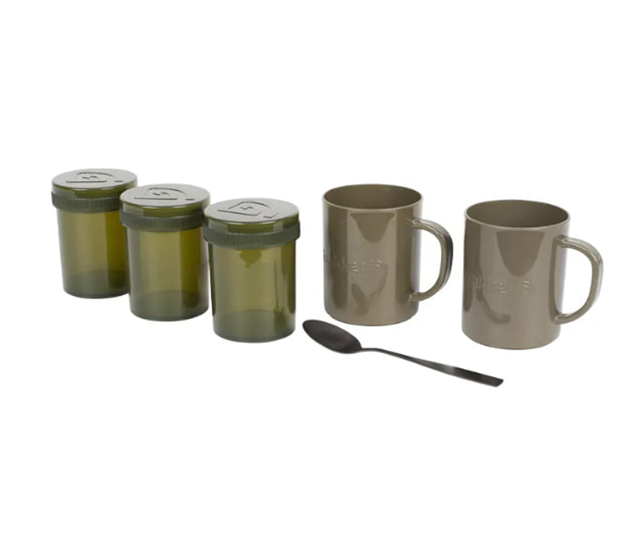 В комплекте есть два пластиковых стаканчика и чайная ложка - удобная гостевая чашка, а также три зеленые чашки Glug Pots, идеально подходящие для чая, сахара и кофе.