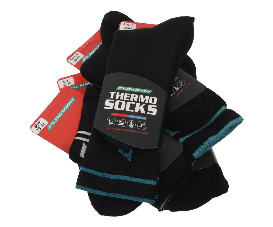 Flagman Sock Set – набор из 5 пар термотреккинговых носков Flagman, специально разработанных для рыболовов и охотников, предназначенных для самых разных ситуаций и условий эксплуатации. Высокотехнологичная пряжа, из которой изготовлены носки Flagman Sock Set, прекрасно удерживает тепло и отводит влагу от тела, благодаря каналам воздушной циркуляции вокруг голени, стопы и пальцев ног. Поэтому ноги всегда остаются сухими, даже если носки используются в паре с сапогами из недышащих материалов, таких как неопрен, ПВХ, резина. Кроме того, анатомический крой носков и подошва с усиленной нейлоновой нитью, ещё больше способствуют прочности изделий Flagman Sock Set и повышенному комфорту носки.