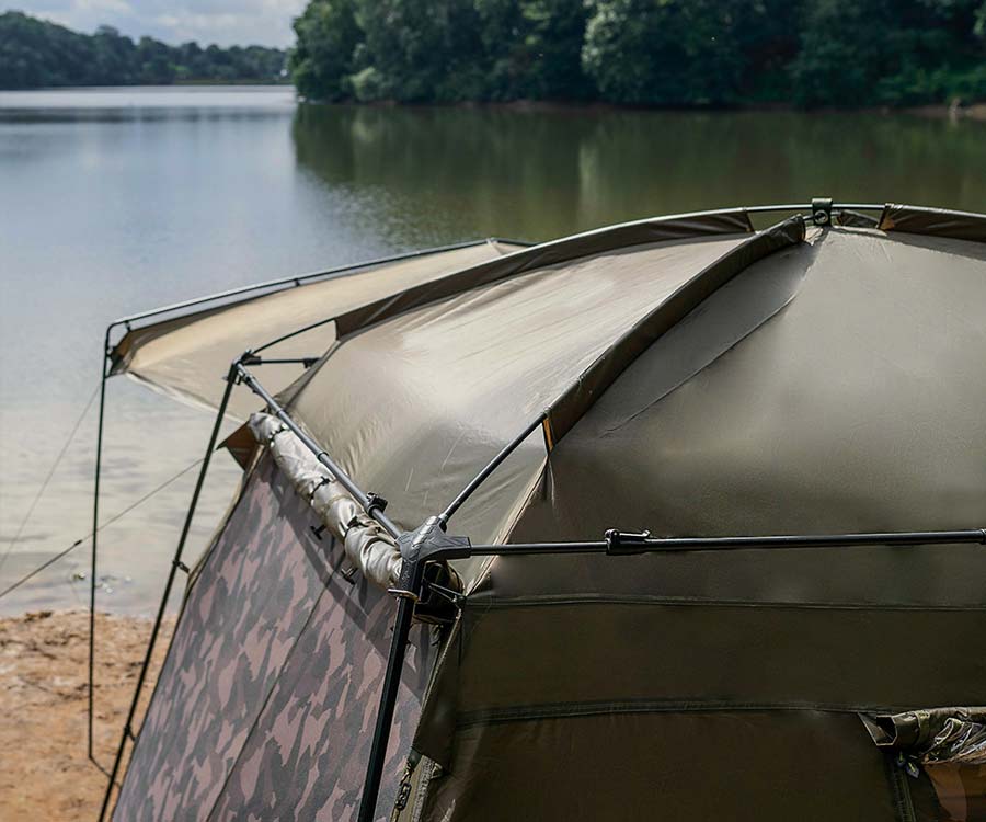 Новое поколение палаток Screen House уже доступно! Его стабильность и универсальность были намного улучшены. Стабилизированный каркас палатки и минимизация скручивания боковых швов благодаря технологии Anti-Twist – очень важные характеристики палатки, особенно в Европе, где часто экстремальные погодные условия могут быть очень тяжелыми. Модернизированный дизайн, грамотно выполненный отводом дождевой воды, позволяет нам очень комфортно проводить время сидя. Он также отлично подойдет как кухня, где можно удобно разместить стол и приготовить еду. Вы также можете хранить в нем вещи, которые мы не хотим засорять в палатке, в которой мы спим. Благодаря возможности открывания с каждой стороны мы можем добавить дополнительные палатки с нескольких сторон, создавая одну центральную жилую зону, таким образом повышая комфорт пребывания у воды. Кроме того, передняя и боковые панели могут быть полностью свернуты или оставлены только сетчатыми панелями для существенного улучшения вентиляции, что особенно важно в жаркие дни. Палатка оборудована большим наружным усиленным навесом, под которым мы можем удобно расположиться, например, когда мы хотим наблюдать за водой. В задней части палатки есть достаточно большое окно, которое может быть полностью закрыто из прозрачного ПВХ материала или с панелью из мозаики. Палатка построена на высоте 10 000 мм водяного столба, сетчатые панели отделаны уникальным камуфляжным рисунком. Все швы палатки дополнительно проклеиваются.