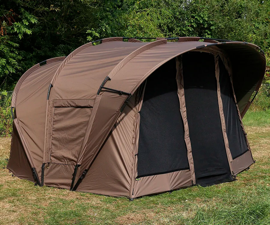 Палатка Fox Retreat+2 Man with inner Dome CUM339 изготовлена из материала Ven-Tec Rip Stop (VRS) последнего поколения с гидростатическим давлением 20000 мм водяного столба. Имеет лёгкие жёсткие алюминиевые опоры, плоскую заднюю часть в сочетании с улучшенными боковыми углами, что обеспечивает максимальное внутреннее пространство жилища. Внутренняя сетчатая палатка оборудована вшитым напольным покрытием, позволяющим устанавливать палатку на влажном грунте. Идеально подходит для длительных рыболовных сессий.