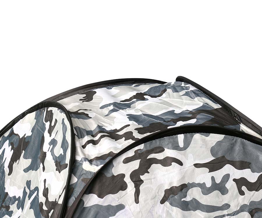 Каркас палатки выполнен из упругих стальных прутьев, которые позволяют развернуть ее за несколько секунд, т.к. дуги распрямляются самостоятельно. Для сборки палатки потребуется пара минут — несколькими движениями каркас сворачивается в плоский круг и помещается в чехол-рюкзак.