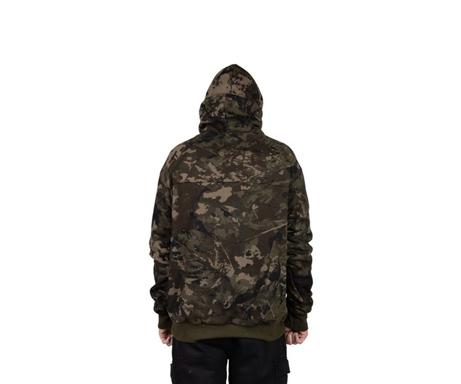 Плотная толстовка свободного покроя с дополнительной защитой в виде цельного снуда двойной толщины для сохранения тепла вокруг шеи и лица.
