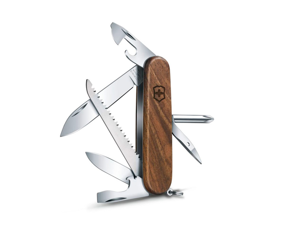 Средний карманный нож Victorinox Hiker Wood 1.4611.63: 91мм, 3 слоя, 11 функций, деревянные накладки (орех), Швейцария.