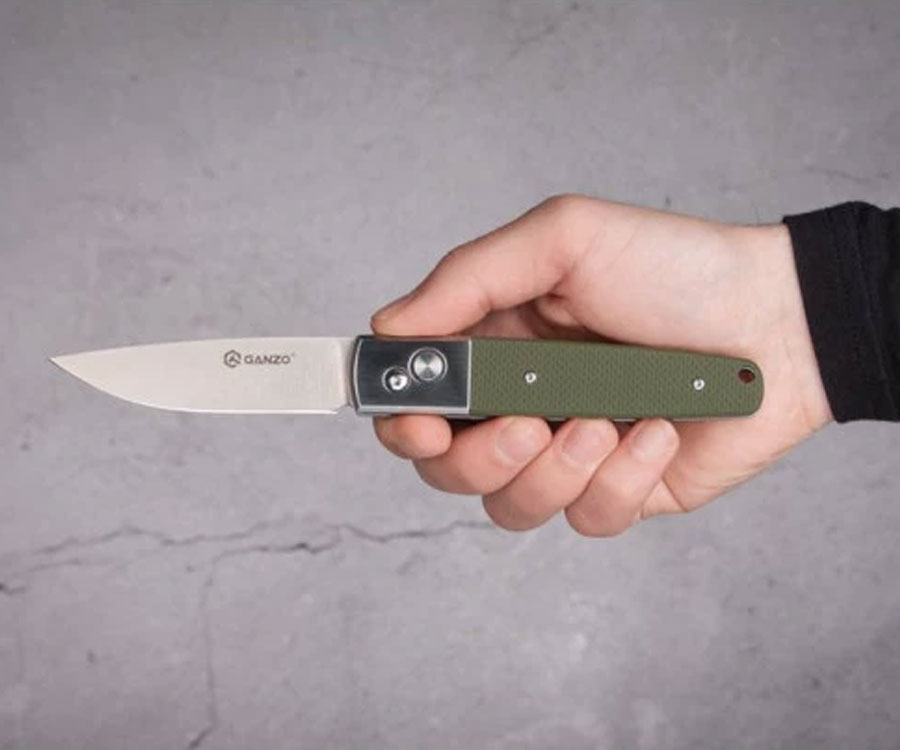 Нож Ganzo 7211 предназначен для использования в самых разных ситуациях: на рыбалке, во время охоты или туристических походов, а также в городских условиях. Его небольшие размеры и эргономичная форма рукоятки как нельзя лучше подходят для того, чтобы нож стал неотъемлемой частью снаряжения, которое вы берете с собою каждый раз, выезжая на природу. В качестве материала для клинка этого ножа производители выбрали нержавеющую сталь Stainless steel марки 440С. Этот сплав содержит марганец, кремний и хром, которые способствуют высокой прочности металла и придают ему хорошие антикоррозийные свойства. Твердость клинка для ножа Ganzo 7211 достигает 58-60 единиц в соответствии со шкалой Роквелла. Нож долго остается острым и пригоден к работе с различными материалами. Производители заточили его универсальной заточкой прямого типа, а поверхность клинка отшлифовали сатинированием. Этот тип обработки поверхности клинка выполнен таким образом, чтобы нож стал полуматовым, а на его поверхности образовался мелкий штриховой узор от шлифовального материала. Поскольку нож Ganzo 7211 — складная модель, он оснащен запирающим механизмом, который удерживает клинок в нужном положении. В данном случае используется замок Auto Lock, позволяющий быстро открывать нож одной рукой и полностью исключающий случайное изменение положения клинка. Рукоятка сделана из комбинированного материала: нержавеющей стали и композитного пластика G10. Такое сочетание позволило добиться высокой прочности, стойкости к любого вида коррозии.