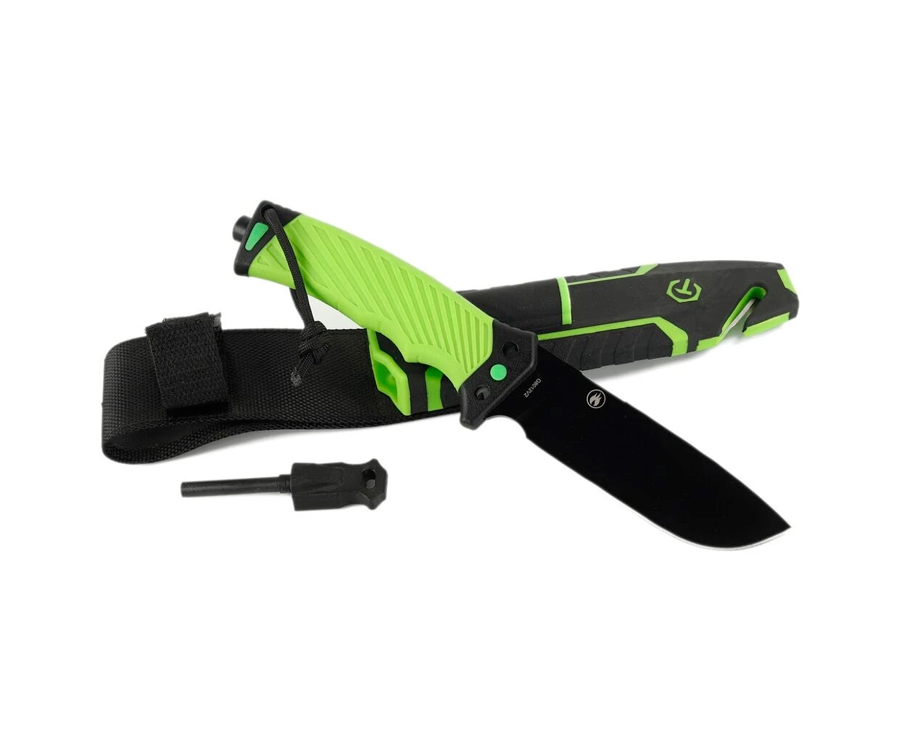 Нож Ganzo G8012V2-LG — яркий пример надежного инструмента, который не боится сложных задач. Его клинок изготовлен из высокоуглеродной стали 8CR13 с твердостью 58 HRC, сочетающей качества, которые необходимы настоящему ножу для выживания. Благодаря высокому содержанию хрома, сталь невосприимчива к появлению коррозии и имеет продолжительный срок службы. Режущая кромка надолго сохраняет свою остроту и эффективно работает даже с твердыми сортами древесины, что пригодится во время отдыха на природе. За счет ширины клинка, которая равна 5 миллиметрам, достигается повышенная надежность инструмента при интенсивных и длительных нагрузках. Клинок с прямой заточкой имеет темное матовое покрытие, которые скрывает небольшие царапины на лезвии.