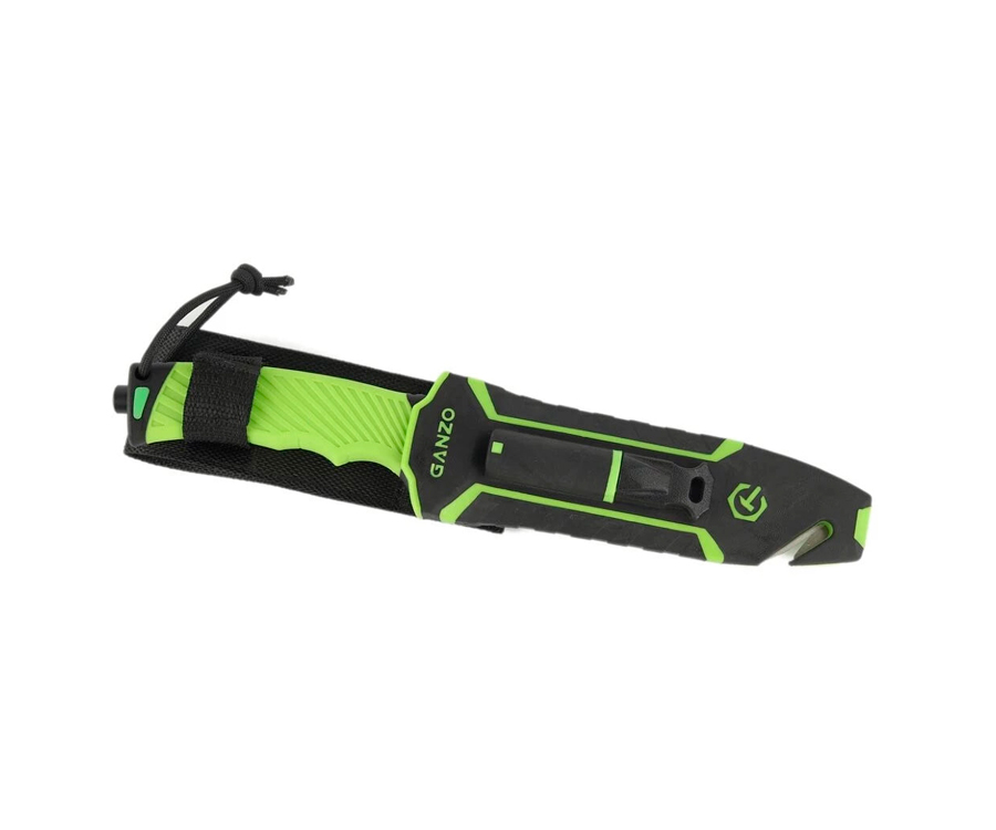 Поскольку нож Ganzo G8012V2-LG создавался специально для нужд путешественников-экстремалов, производитель оснастил его эргономичной рукоятью, которая легко помещается в ладонь любого размера. Выемка для упора под палец делает хват более надежным и позволяет удерживать инструмент даже во влажной руке. Материал рукояти — ABS-пластик, который ценится в ножевой промышленности за ударопрочность и невосприимчивость к воздействию кислот, бензина и других химических веществ без потери свойств и цвета.