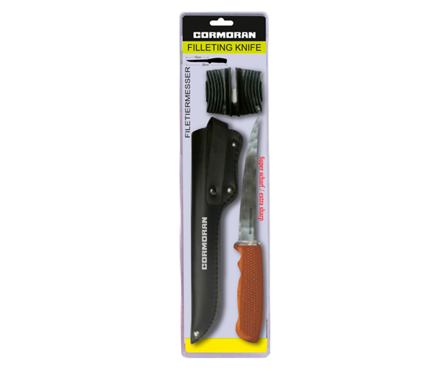 Cormoran Filetiermesser Modell 3001 82-13001 – набор для филейной разделки, состоящий из очень удобного компактного филейного ножа и точилки для ножей. Длина лезвия ножа: 15 см. Общая длина: 28 см.