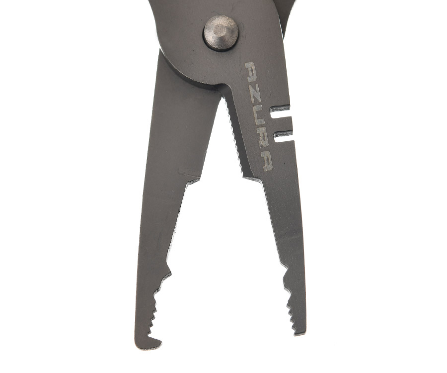 Azura Safina Multifunctional Scissors – компактные и удобные плоскогубцы, сочетающие в себе функции ножниц и мини-пассатижей. Плоскогубцы имеют специальный «зуб» для разжимания заводных колец, миниатюрные губки, приспособления для зажимания обжимных трубочек и специальные прорези, которые помогут подогнуть петельку воблера, крючок или элемент оснастки. Azura Safina Multifunctional Scissors изготовлены из высококачественной стали с черным PTFE покрытием. Острая режущая кромка одного из лезвий имеет насечку, что обеспечивает лёгкое перерезание как лесок или флюорокарбона, так и рыболовных шнуров. Большие удобные пластиковые ручки Azura Safina Multifunctional Scissors позволяют работать с инструментом даже в рыболовных перчатках. На одной из ручек предусмотрено отверстие для крепления к ретриверу.