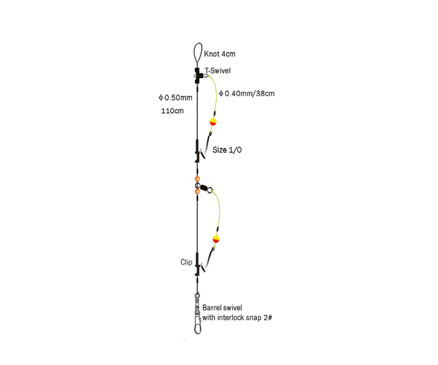 Spro 2-Hook Flatfish Rig 4745-103 – готовая оснастка c двумя крючками #4 для ловли морской рыбы. Представляет собой разнесенный монтаж с подвижными поводками, крючки которых оснащены привлекательными для рыбы бусинами. Монтаж Flatfish Rig заканчивается мощной застежкой-американкой, на которую крепится огрузка либо зацеп. Диаметр основной лески – 0,5 мм, поводков – 0,4 мм.