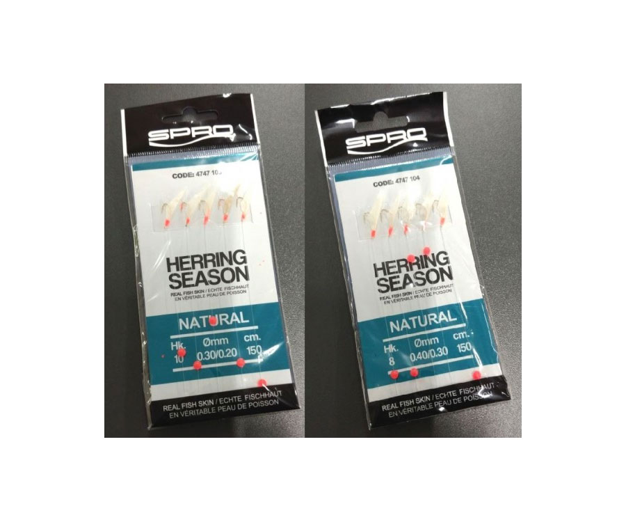 Spro Herring Rig — морская оснастка на 5 крючках №10 с повязанными стримерами из люрекса и светонакопительными бусинками. Доступна в 2-х цветах: aurora и natural.