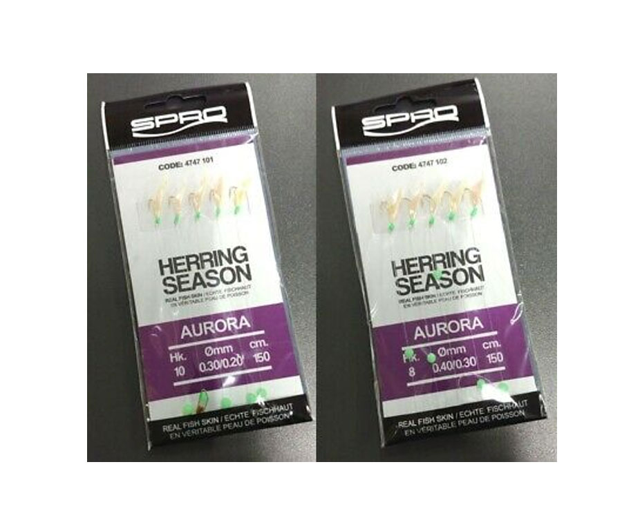 Spro Herring Rig — морская оснастка на 2 крючка №8 с повязанными стримерами из люрекса и светонакопительными бусинками. Доступна в 2-х цветах: aurora и natural.