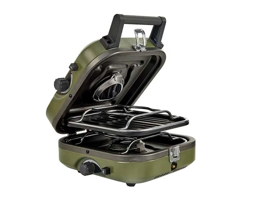 Горелку Naturehike NH22RJ003 можно использовать как обычно или как гриль, предварительно установив на конфорку ребристый противень из комплекта. Противень размером 19,4 х 17,4 см имеет антипригарную поверхность и позволяет вкусно и быстро приготовить стейки, сосиски, рыбу и другие продукты. Конструкция горелки изготовлена из сочетания нержавеющей и холоднокатаной стали, что положительно влияет на износостойкость и долговечность модели. Предельный вес, который она способна выдержать – 5 кг. Корпус отличается нетребовательностью в уходе: достаточно вовремя удалять копоть и остатки жира с металлической поверхности с помощью мягкой губки и моющего средства. Стойкость конструкции обеспечивают четыре пары обрезиненных ножек, которые минимизируют скольжение горелки по гладким поверхностям. Модель складывается подобно чемодану и закрывается при помощи металлического замка.