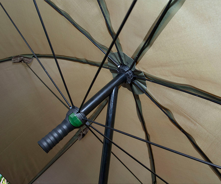 Зонт Korum Super Steel Brolly изготовлен на прочной стальной раме. Может использоваться в вертикальном положении или в угловом заднем положении. Для повышения устойчивости используйте фиксирующие штыри. Зонт легкий, прочный, изготовлен из нейлона 210D. Держатель выполнен из особо толстого алюминиевого профиля, что обеспечивает максимальную прочность и долговечность изделия.