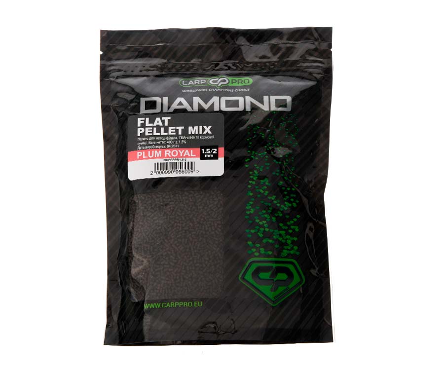 Carp Pro Diamond Flat Pellets Mix – специальный прикормочный микс из нескольких видов пеллетса премиум класса, который предназначен для фидерной ловли с кормушками типа «метод», изготовления ПВА-стиков или использования в создании прикормочных смесей. Гранулы микса Diamond Flat Pellets состоят из натуральных высококачественных ингредиентов, поставляемых с европейского рынка и обладающих высокой пищевой ценностью для рыбы. Увлажненный пеллетс становится липким и тяжелым. Он прекрасно формуется в пресс-форме, отлично держится в кормушке, хорошо тонет и остается на дне рядом с насадкой, распространяя в воде ценные питательные вещества и насыщенный аромат, что мгновенно стимулирует аппетит рыбы и побуждает ее к активному кормлению. Пеллетс Carp Pro Diamond Flat Pellets Mix содержит высокий уровень натуральных аттрактантов, которые эффективно привлекают рыбу в любое время года. Данная серия может использоваться как в фидерной, так и карповой рыбалке.