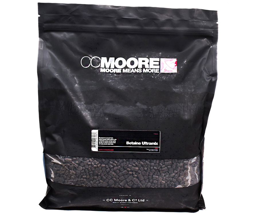 Пеллетс CC Moore Betaine Ultramix — содержит бетаин, который завоевал репутацию одной из самых эффективных добавок за последние годы. Многие компании, занимающиеся изготовлением карпового питания, используют этот пищевой ингредиент для улучшения привлекательности корма и стимуляции аппетита у рыб. Также в составе гранул содержится большой процент экстракта зеленогубой ракушки и мясо кальмара. В упаковке представлены четыре различных размера пеллетса с разной скоростью распада, благодаря этому в воде постоянно образуется поток из питательных и привлекательных веществ, которые заставляет рыбу активно кормиться. Различные диаметры пеллетов придают кормовому столу более естественный вид, что меньше настораживает рыбу.