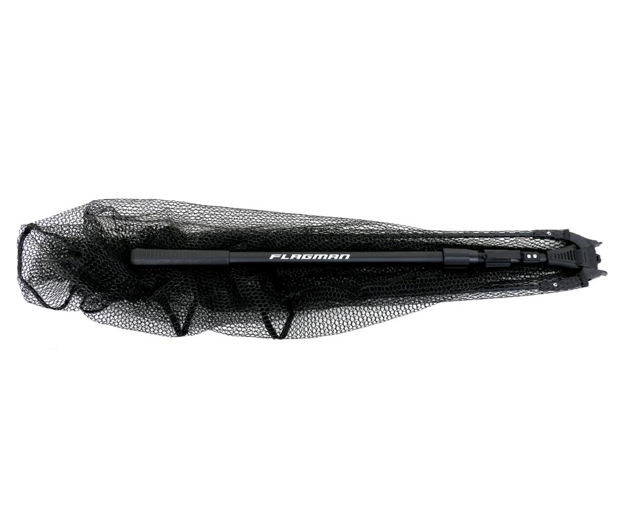Подсак с алюминиевой ручкой и складной головой треугольной формы. Обод выполнен из алюминия и гибкой цепочки. Трехчастная телескопическая ручка выполнена из алюминия, оснащена резиновой рукояткой. Узел крепления головы к ручке, а также фиксаторы ручки выполнены из прочного пластика. Прорезиненная мелкоячеистая сетка не травмирует рыбу, не впитывает воду и запахи, в ней практически не путаются крючки. Вес: 730г.