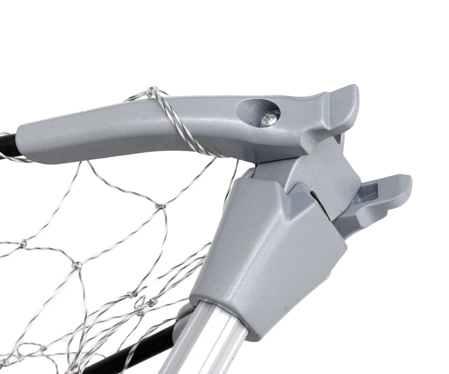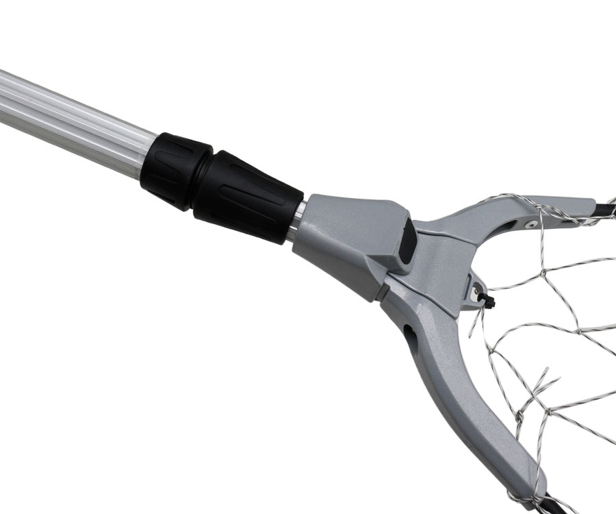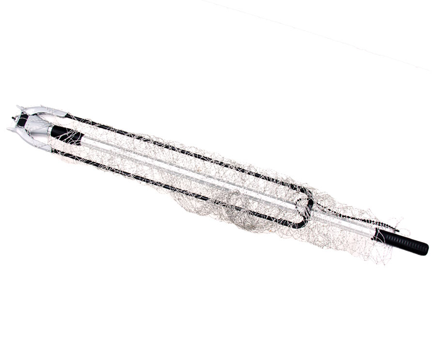 Складной спиннинговый подсак с алюминиевой телескопической ручкой. Шарнирный механизм крепления головы к ручке – алюминиевый, а фиксатор ручки – пластиковый. Сетка изготовлена из корда для теннисных ракеток, благодаря чему в ней практически не путаются крючки спиннинговых приманок. Особенно, это актуально при ловле на приманки, оснащенные двумя тройниками, например, на воблеры. Большая глубина сетки выступает гарантией того, что рыба не выскочит из подсака сразу после взятия.