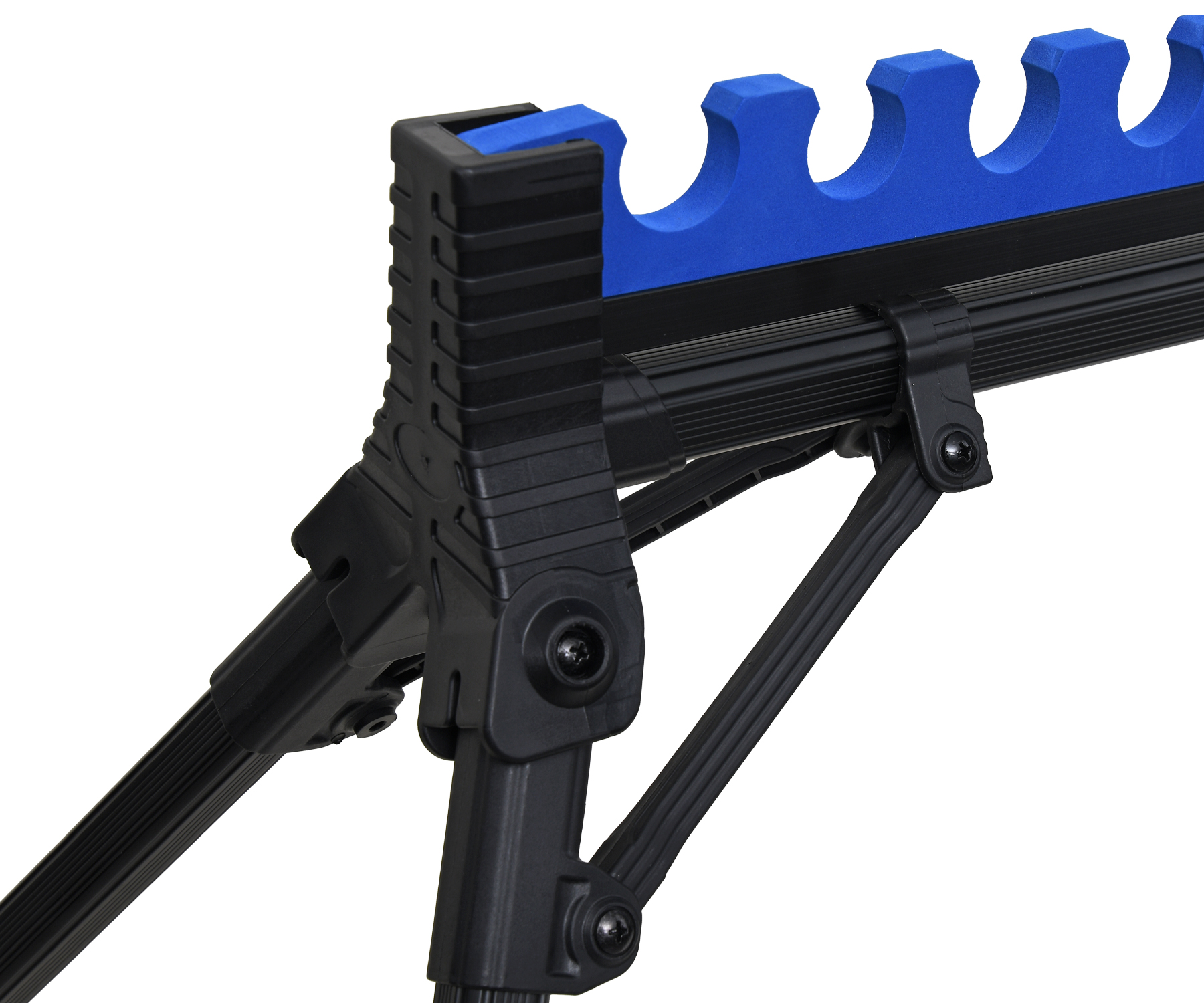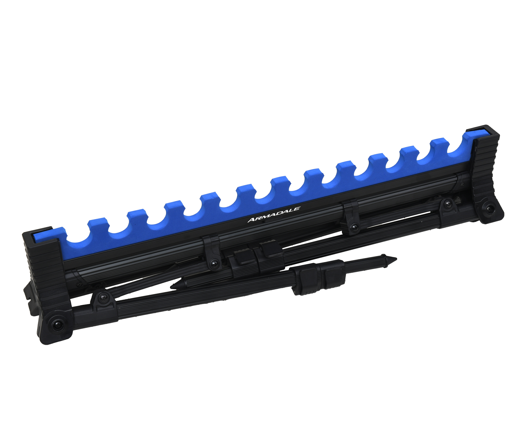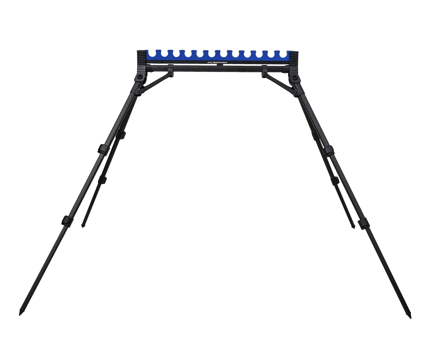Подставка Flagman для запасных удилищ или китов штекера на 4 телескопических ножках. Оснащена мягкой гребенкой с 12 выемками для удилищ. Обладает высокой прочностью и имеет складную конструкцию, обеспечивающую быстрый монтаж и демонтаж. Имеет исключительно устойчивость – телескопическая конструкция ног позволяет менять высоту и приспосабливаться к неровному рельефу. Предусмотрен крючок для подвешивания груза при ловле во время сильного ветра. Мягкая вставка из EVA защищает бланки удилищ от повреждения. Гребенка быстро собирается и разбирается, отличается компактностью при транспортировке. Поставляется в чехле из плотной ткани.