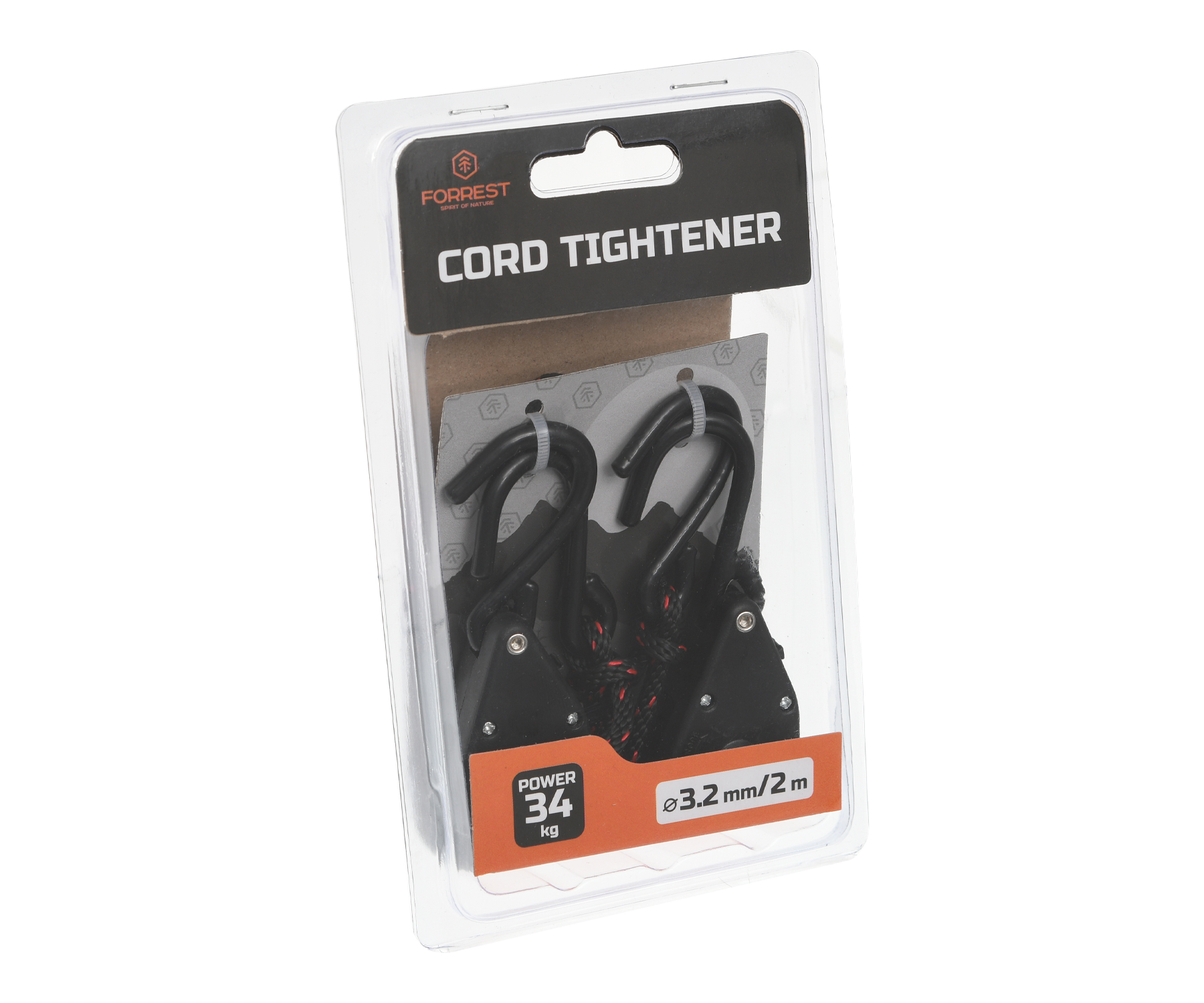 Forrest Cord Tightener 2m 2pcs – универсальный подвес для тентов и палаток, предназначенный для любителей активного отдыха, которым нужна высокая функциональность в компактной форме. Подвес имеет конструкцию шкива с фиксацией и обеспечивает быструю и лёгкую установку растяжек тента, палатки, рыболовного зонта и т.п. Легко регулируйте длину растяжки и соединяйте различные предметы при помощи Forrest Cord Tightener для повышения функциональности вашего туристического оборудования.