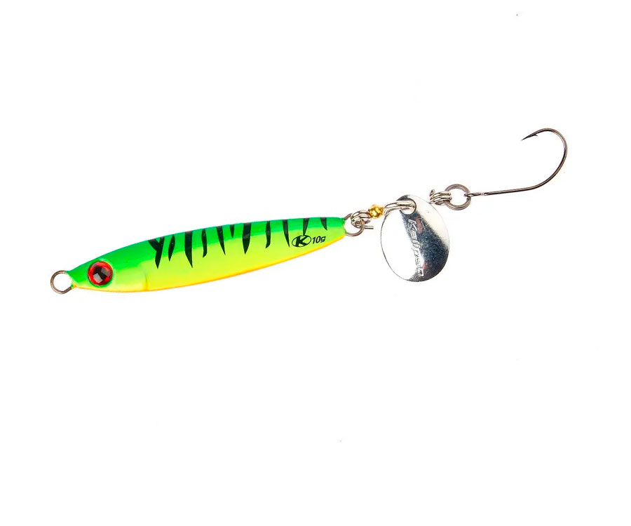 Пилькер Kalipso Photon – уловистый пилькер для ловли саргана, ставриды, луфаря и другой хищной рыбы, включая речных хищников: окуня, жереха, щуку и судака. В отличие от других пилькеров, Kalipso Photon имеет элемент с активной игрой в хвостовой части, в виде металлического лепестка (безосевой вертушки) с формой «колорадо». Эта особенность приманки Kalipso Photon значительно разнообразила варианты проводок, увеличив эффективность равномерных протяжек и сделала игру на падении более привлекательной. Конструкция лепестка съёмная, т.е. приманку можно использовать и как классический пилькер. Форма пилькера Kalipso Photon способствует дальнему и точному забросу, что позволяет обловить большую акваторию. Приманка выпускается в 4 типоразмерах с весом 7, 10, 12, 15 г, в нескольких расцветках, оснащена одинарным крючком.