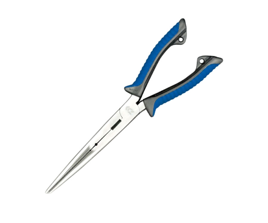 Инструмент Daiwa Plier V – многофункциональный инструмент для работы с заводными кольцами, поводковыми материалами и обжимными трубками от компании Daiwa. Оснащён кусачками и плоскогубцами. Эргономичные накладки на рукояти имеют отверстия для крепления к ретриверу.