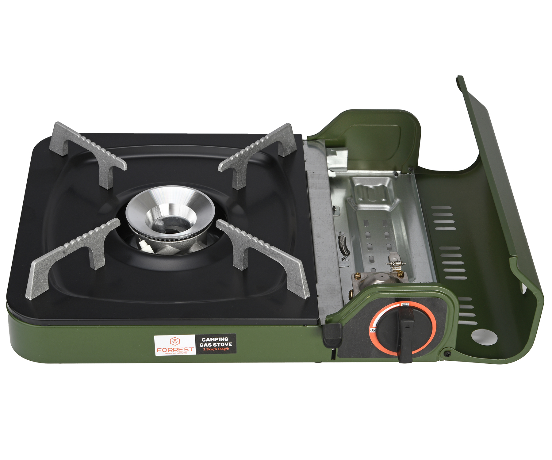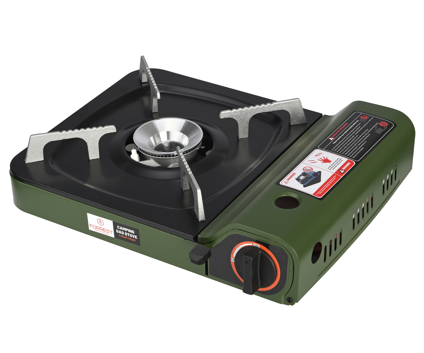 Портативная газовая плита для кемпинга Forrest Camping Gas Stove FCGS-29 – компактная туристическая газовая плата с одной конфоркой, созданная для максимального удобства в путешествиях, кемпинге, на рыбалке или на даче. Благодаря компактным размерам корпуса плата занимает минимум места при хранении и легко размещается в багажнике автомобиля или среди туристического снаряжения. Модель удобно использовать в условиях ограниченного пространства – во время отдыха на природе или на небольшой кухне. Плита Forrest Camping Gas Stove также станет практичным решением для дома в качестве резервного источника приготовления пищи во время длительных отключений электроэнергии. Ее надёжная конструкция обеспечивает устойчивость посуды, а простая и понятная эксплуатация позволяет быстро приготовить пищу без лишних усилий. Плита Forrest Camping Gas Stove работает от туристического цангового баллона 220 г, который устанавливается внутрь плиты.